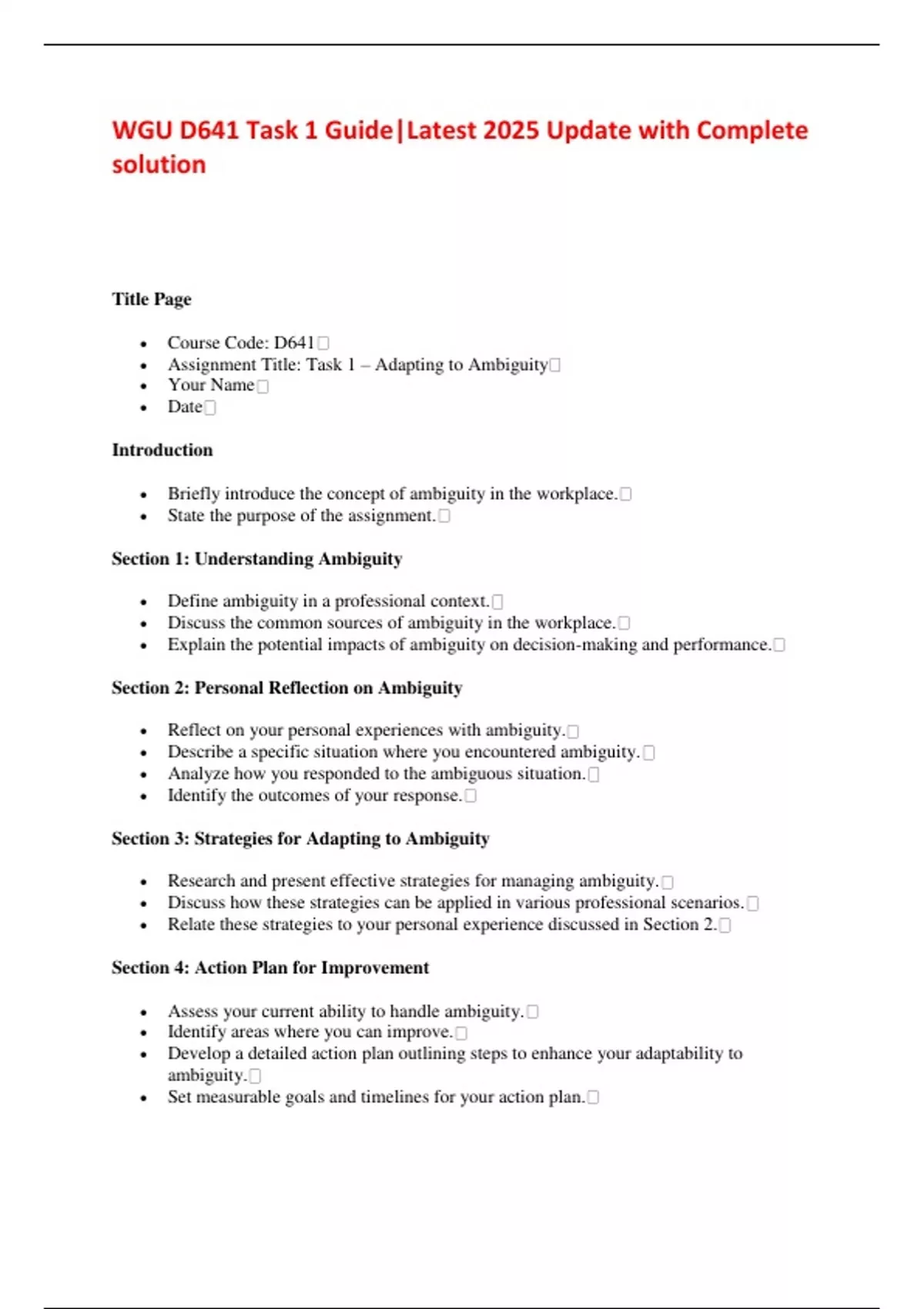 Here’s an expanded version of the guide for WGU’s D641 Task 1: Adapting to Ambiguity