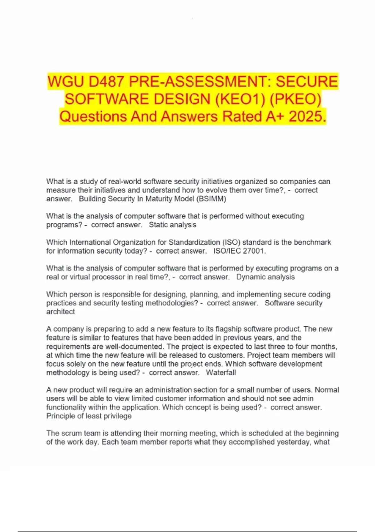 WGU D487 PRE-ASSESSMENT: SECURE SOFTWARE DESIGN (KEO1) (PKEO) Questions And Answers Rated A+ 2025.