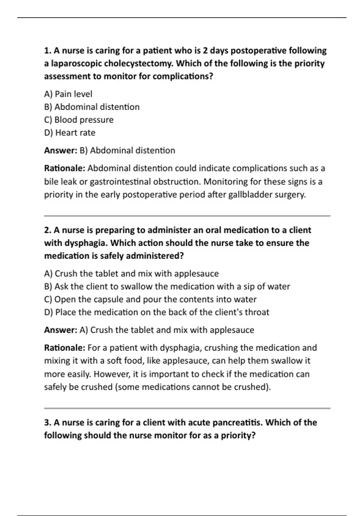 3. A nurse is caring for a client with acute pancreatitis. Which of the