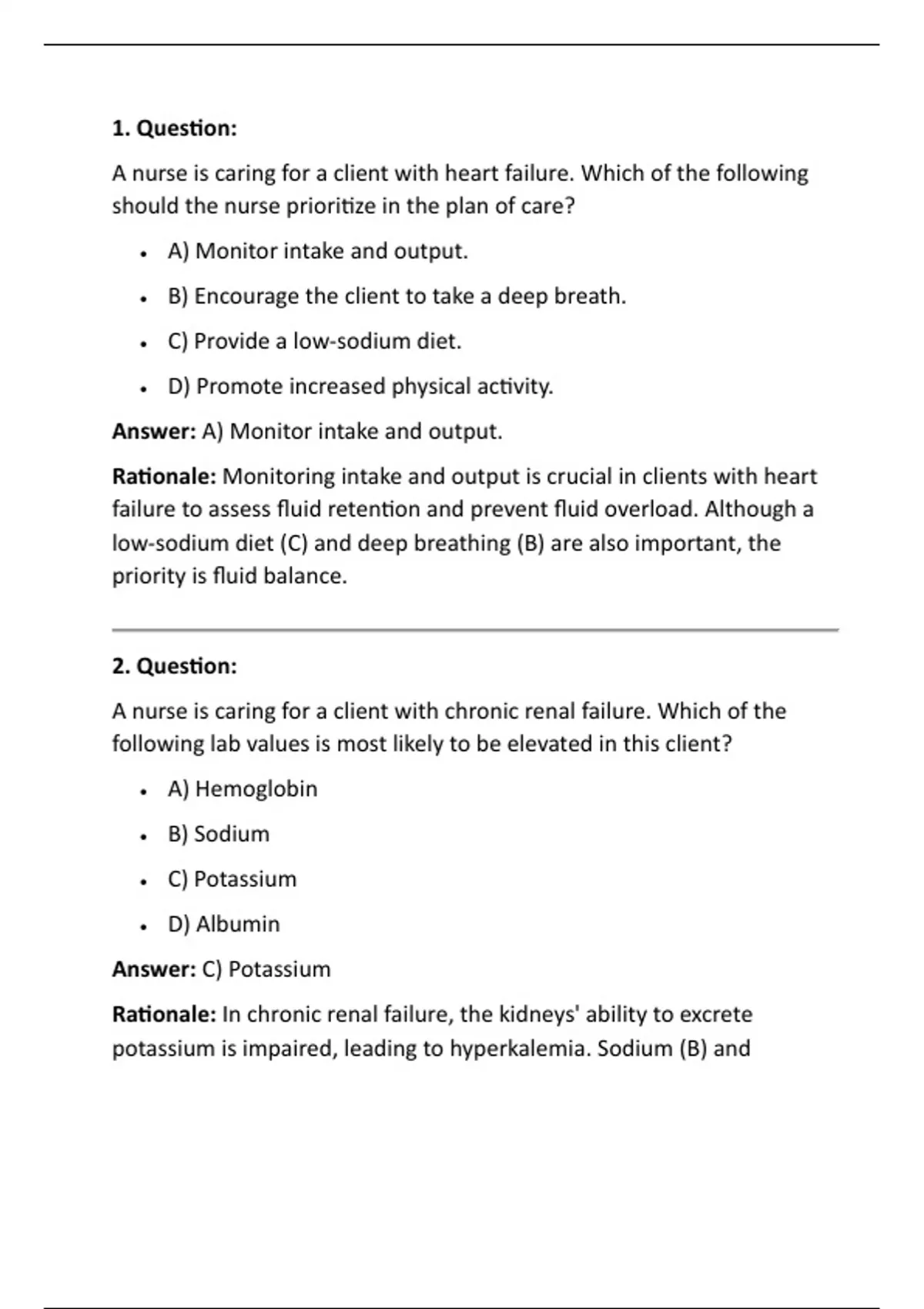 Rationale: Monitoring intake and output is crucial in clients with heart