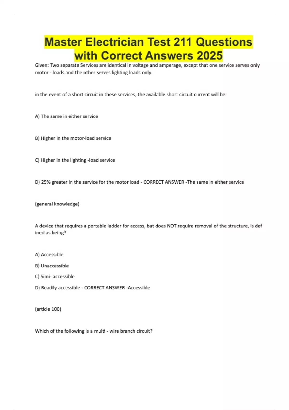 Master Electrician Test 211 Questions