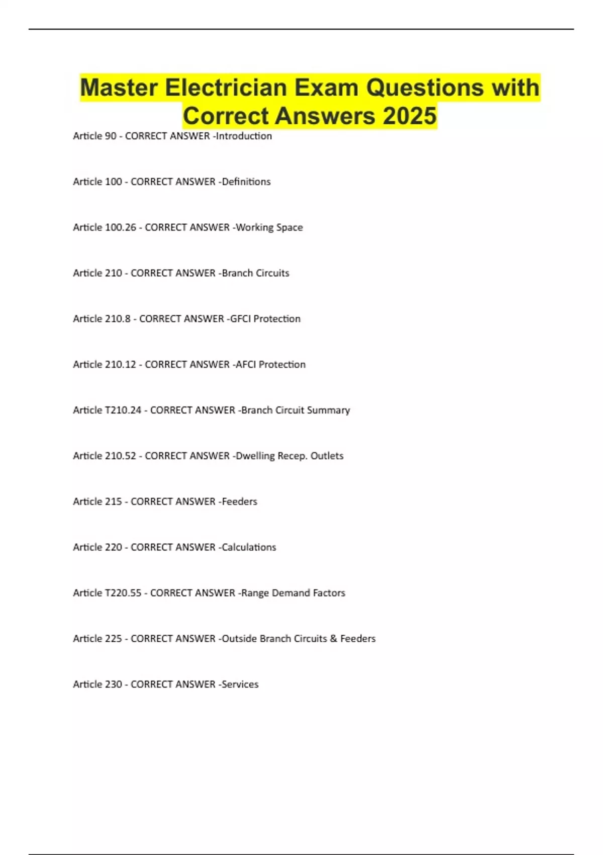 Master Electrician Exam Questions with