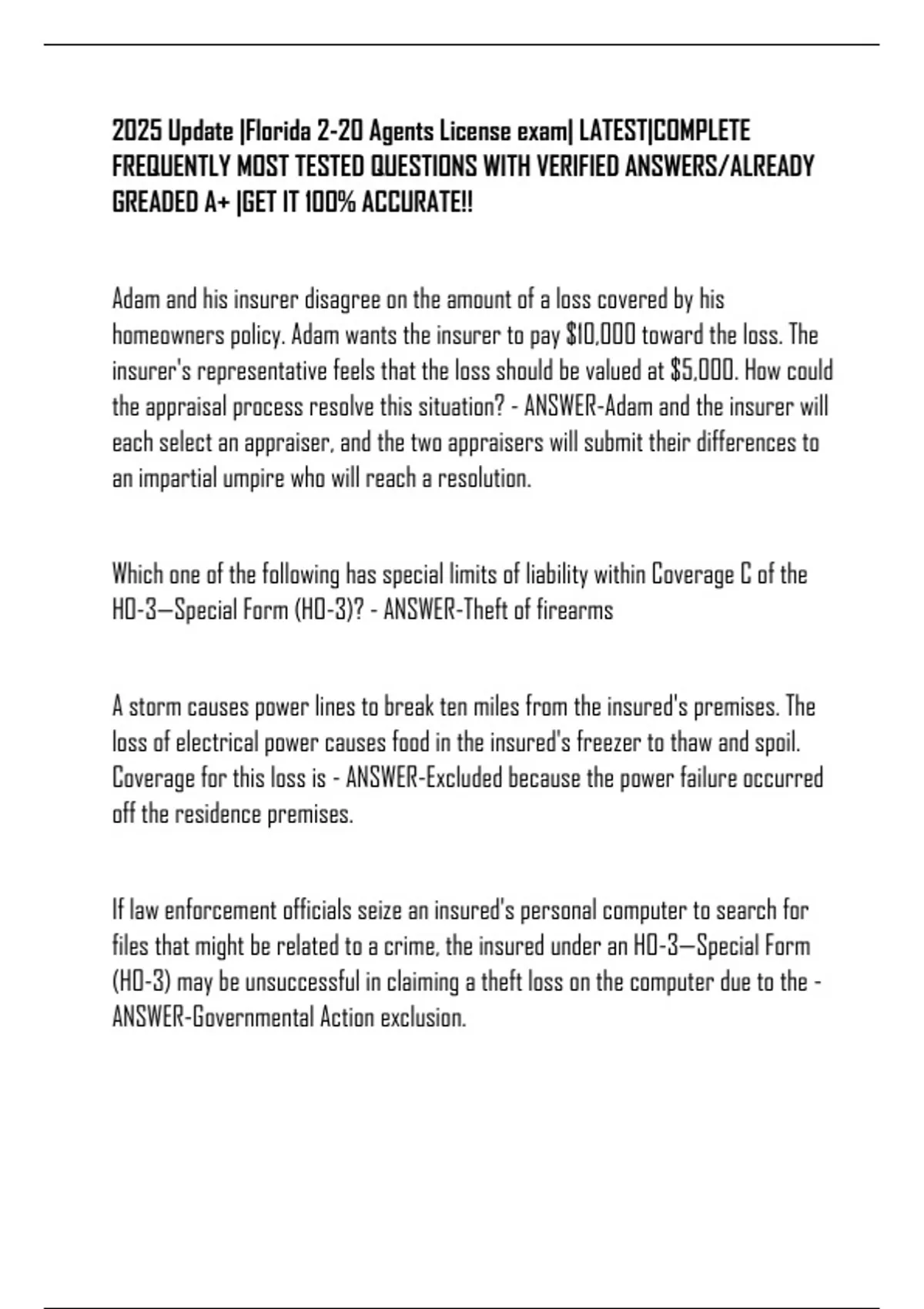 the appraisal process resolve this situation? - ANSWER-Adam and the insurer will