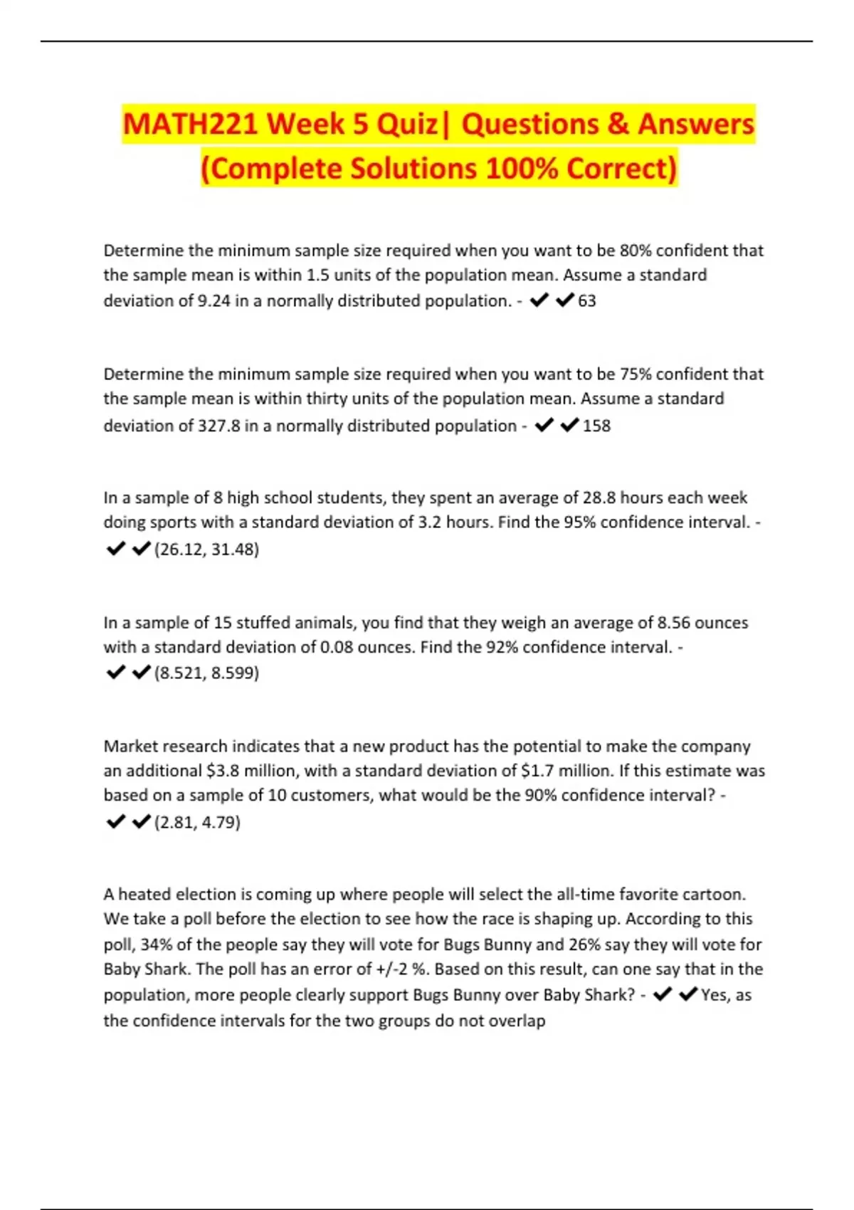 MATH221 Week 5 Quiz| Questions & Answers