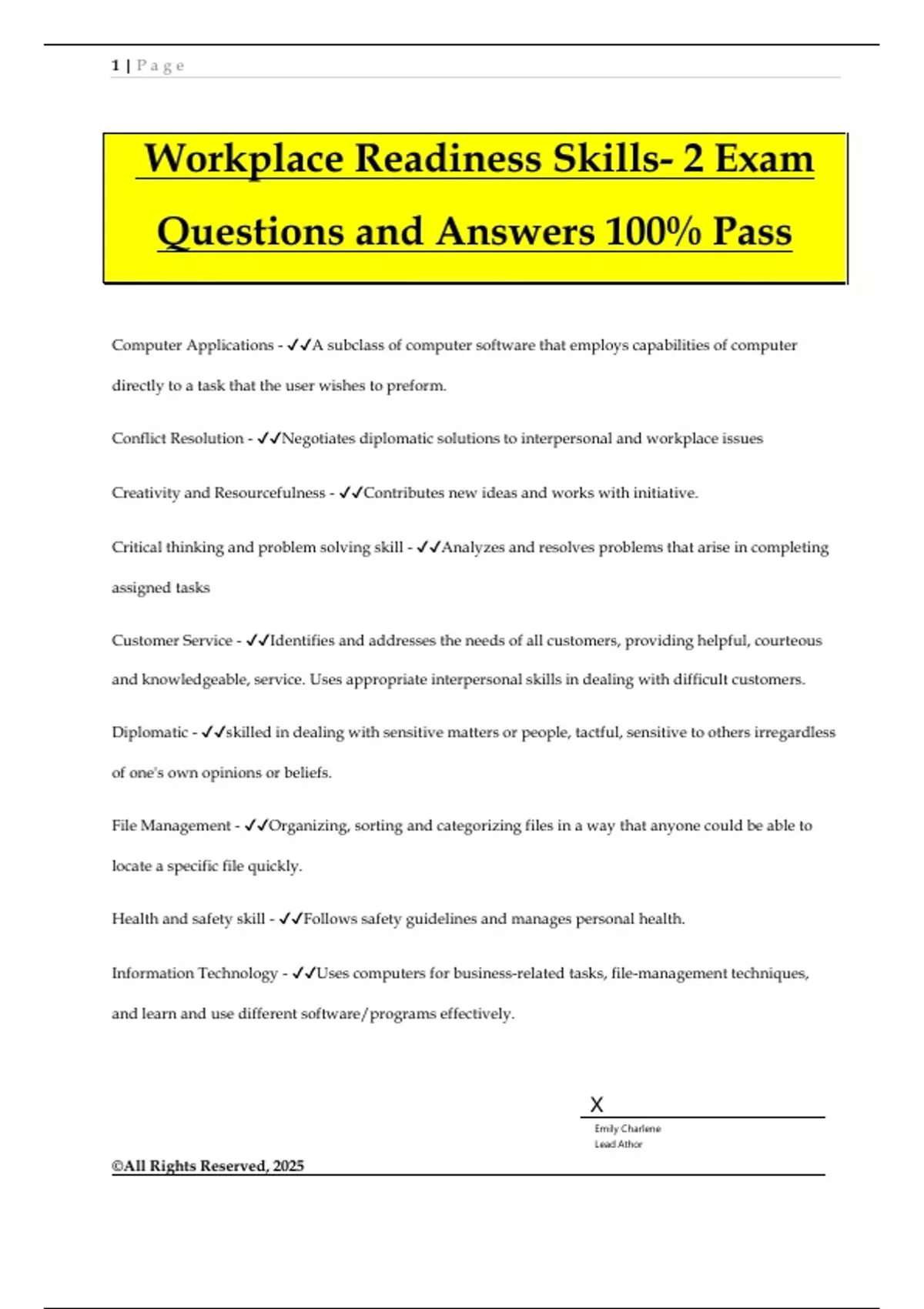 Workplace Readiness Skills- 2 Exam