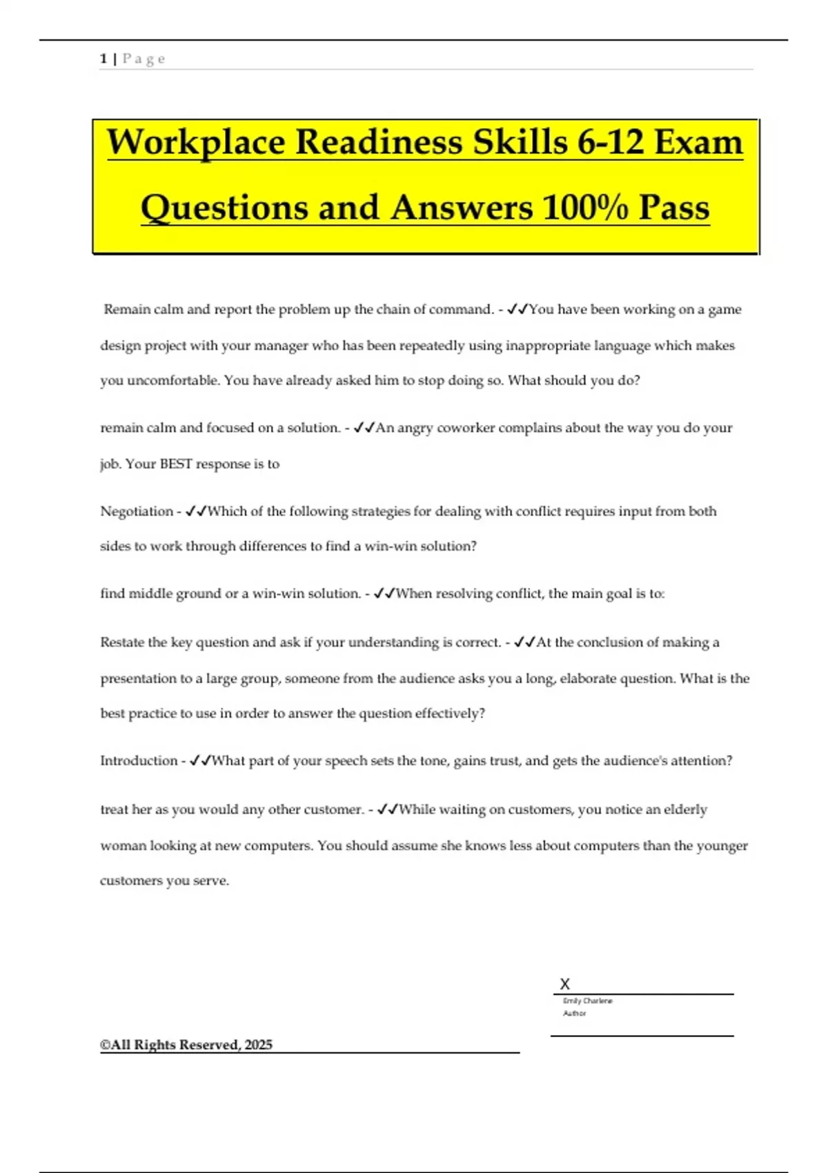 Workplace Readiness Skills 6-12 Exam