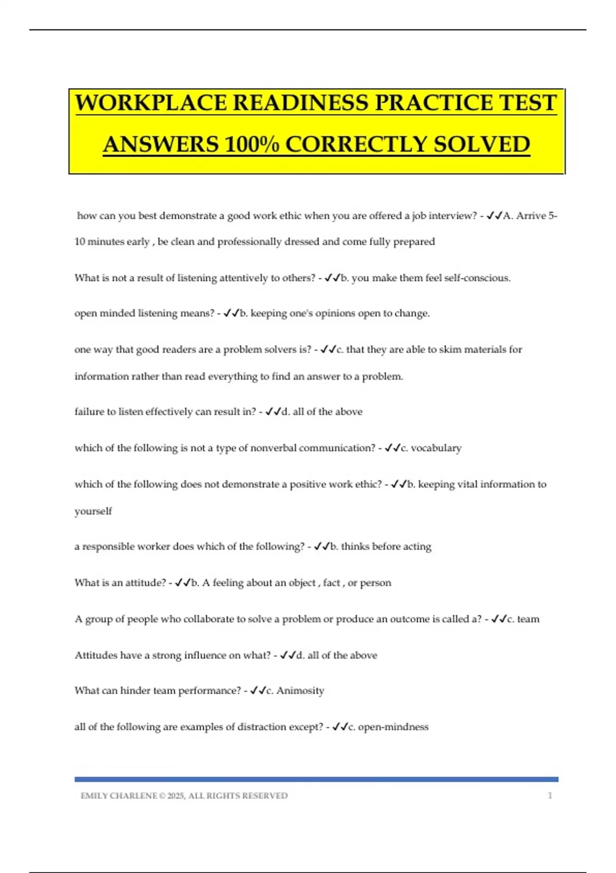 WORKPLACE READINESS PRACTICE TEST