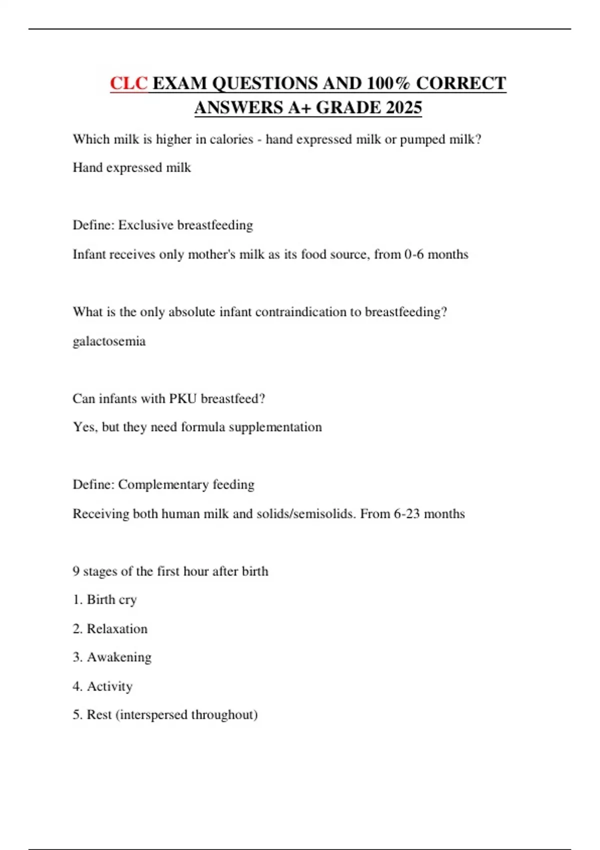 CLC EXAM QUESTIONS AND 100% CORRECT