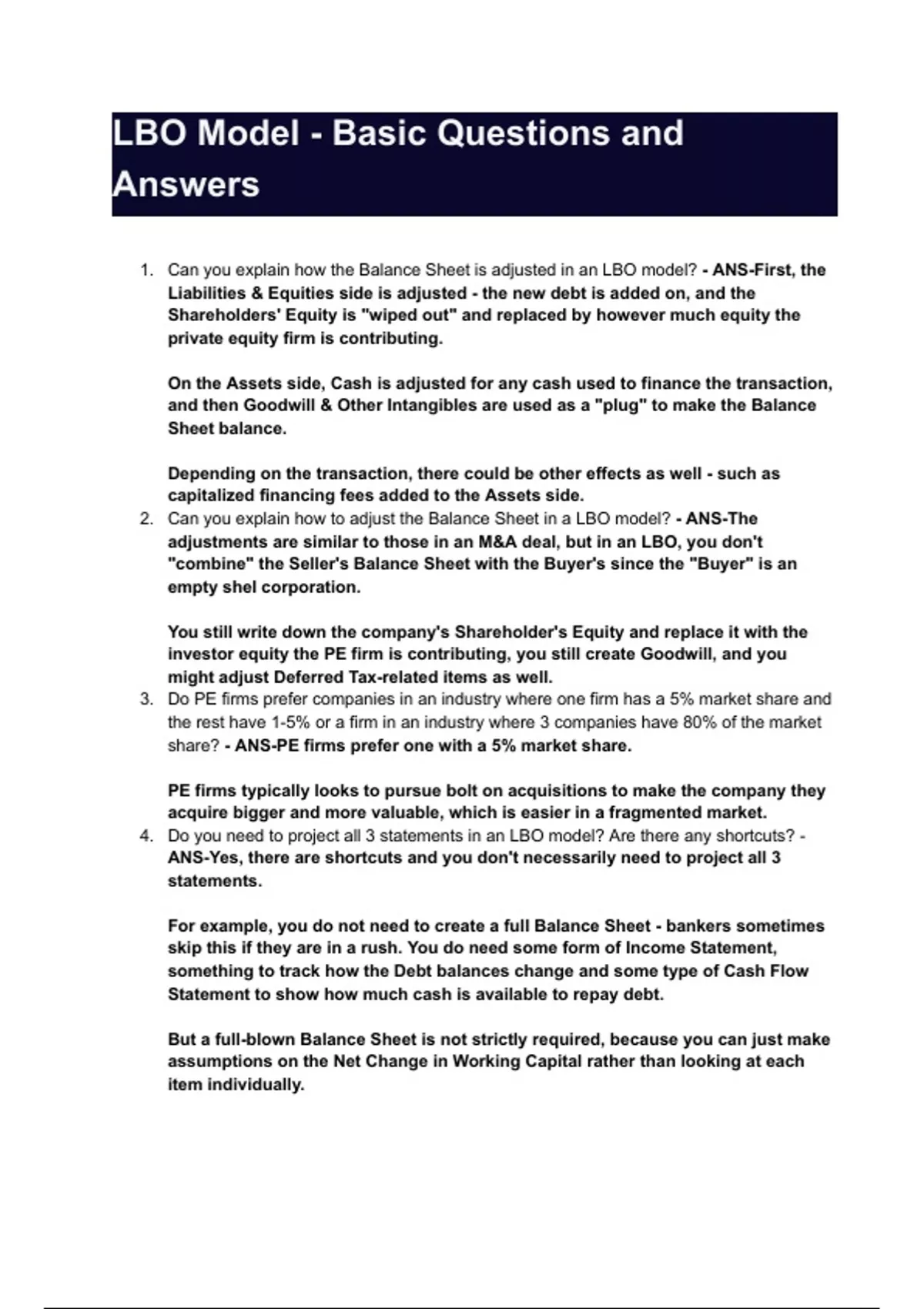 4. Do you need to project all 3 statements in an LBO model? Are there any shortcuts? -