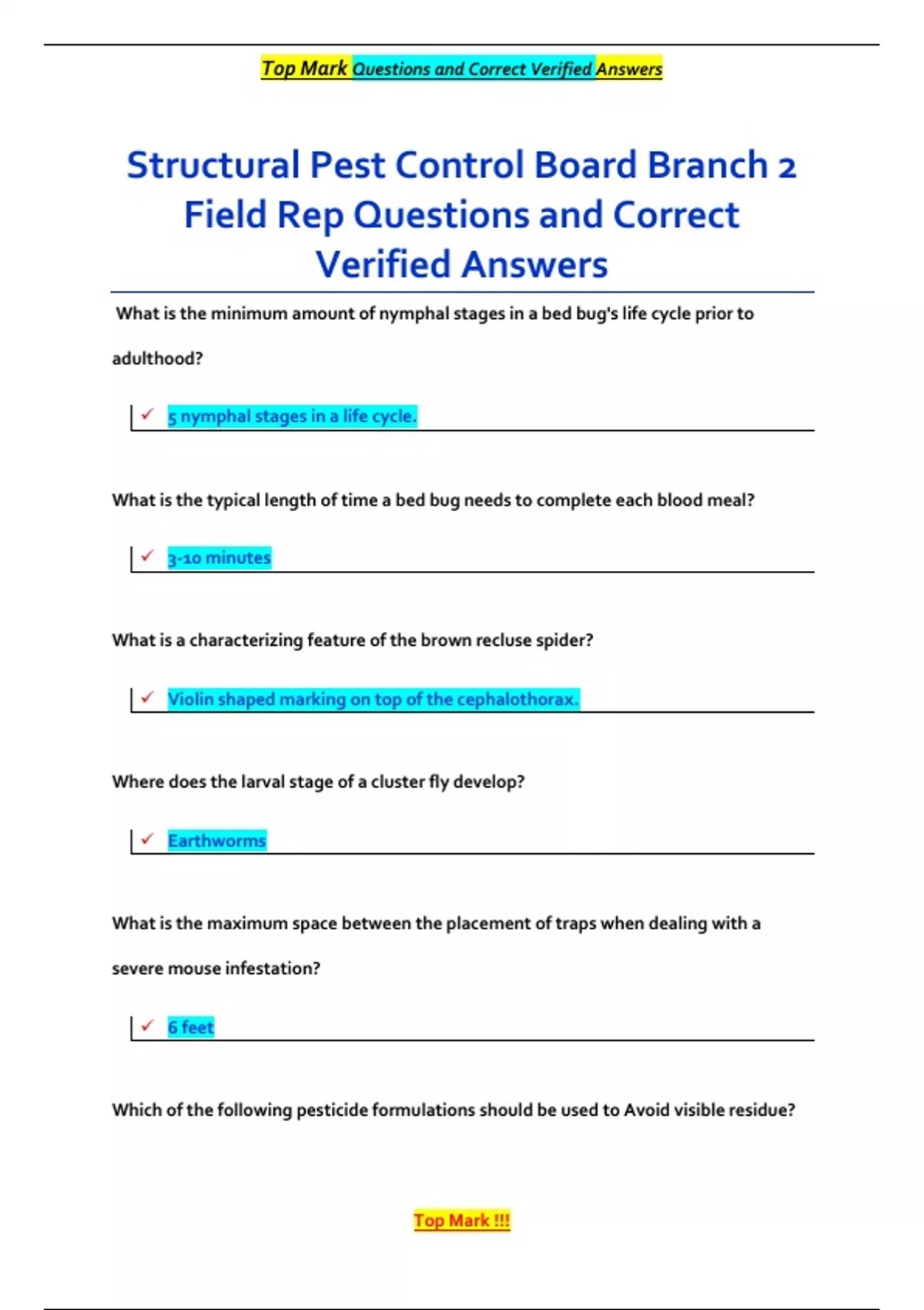 , Top Mark Questions and Correct Verified Answers