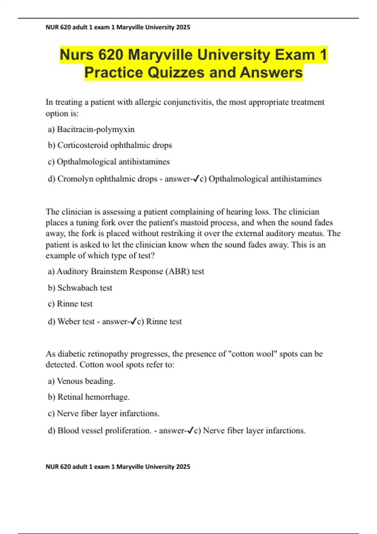 , NUR 620 adult 1 exam 1 Maryville University 2025