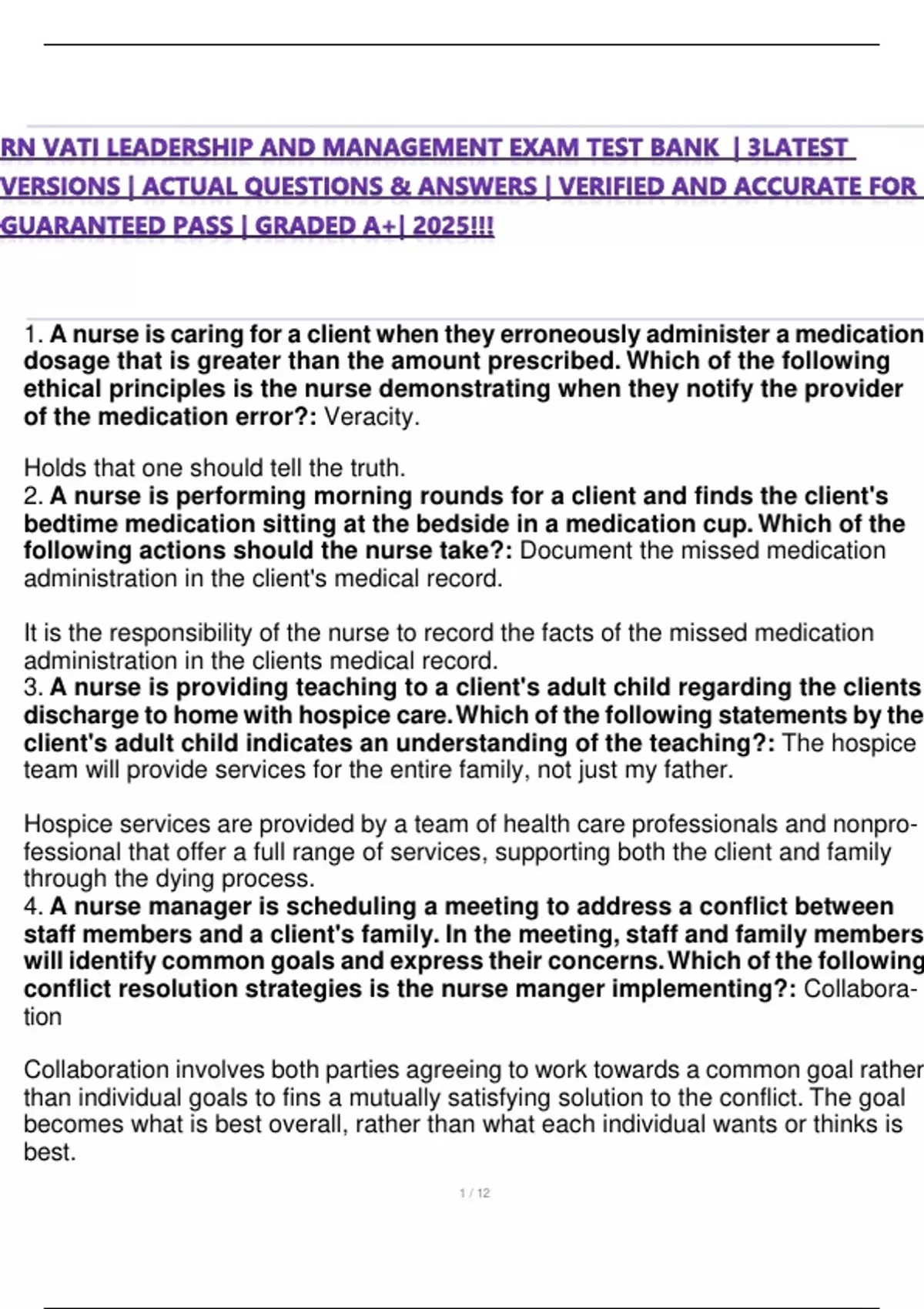 conflict resolution strategies is the nurse manger implementing?: Collabora-