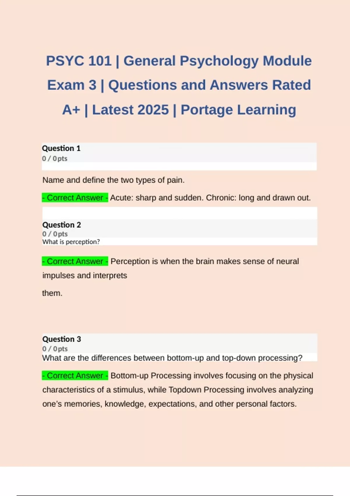 - Correct Answer - Bottom-up Processing involves focusing on the physical