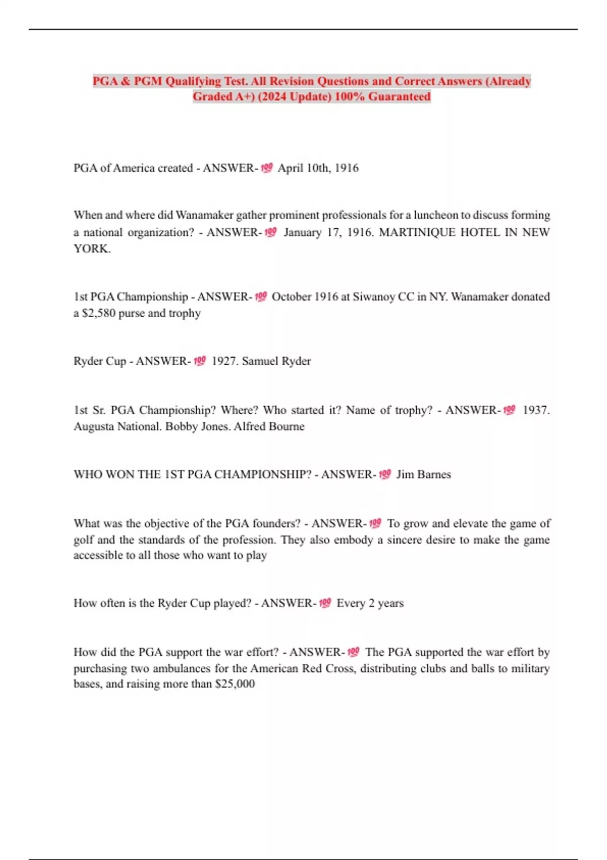 PGA & PGM Qualifying Test. All Revision Questions and Correct Answers (Already