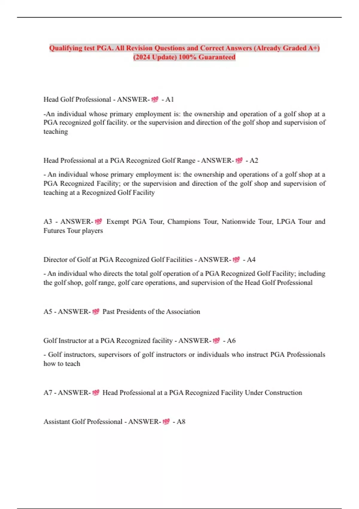 Qualifying test PGA. All Revision Questions and Correct Answers (Already Graded A+)