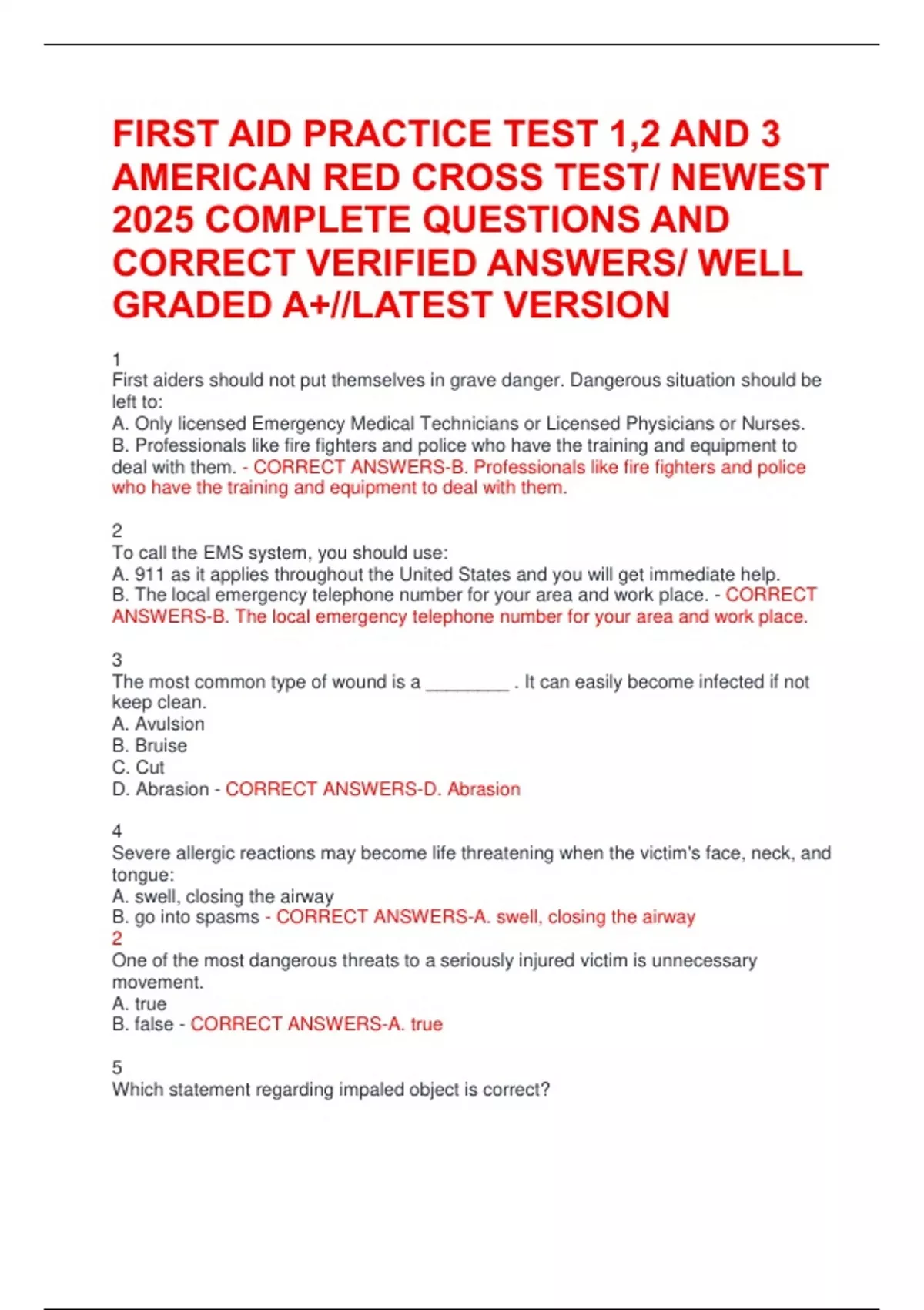 ANSWERS-A. Check the scene, call 911, and care for the victim