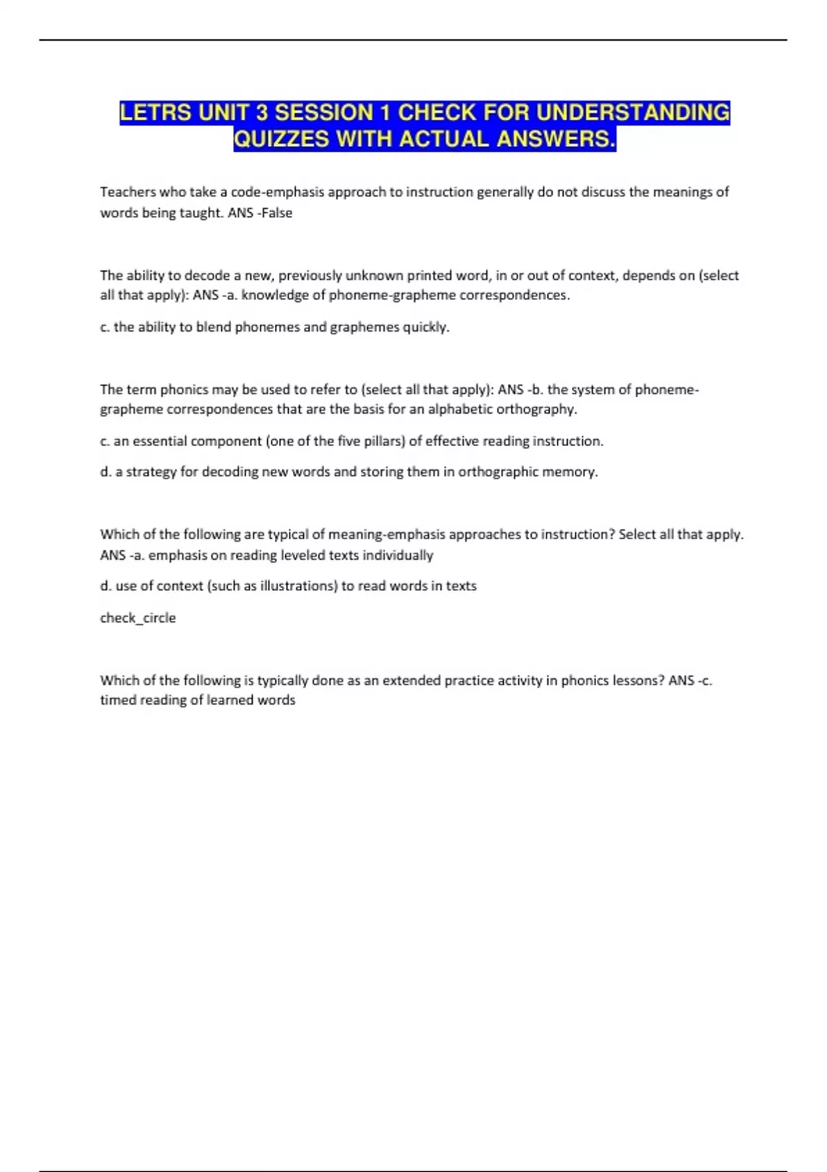 Which of the following is typically done as an extended practice activity in phonics lessons? ANS -c.