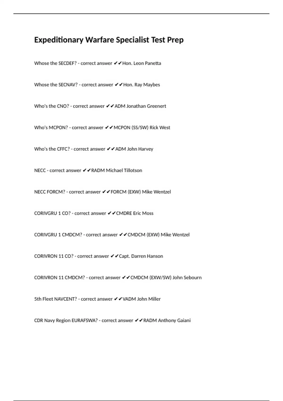 CORIVGRU 1 CMDCM? - correct answer ✔✔CMDCM (EXW) Mike Wentzel