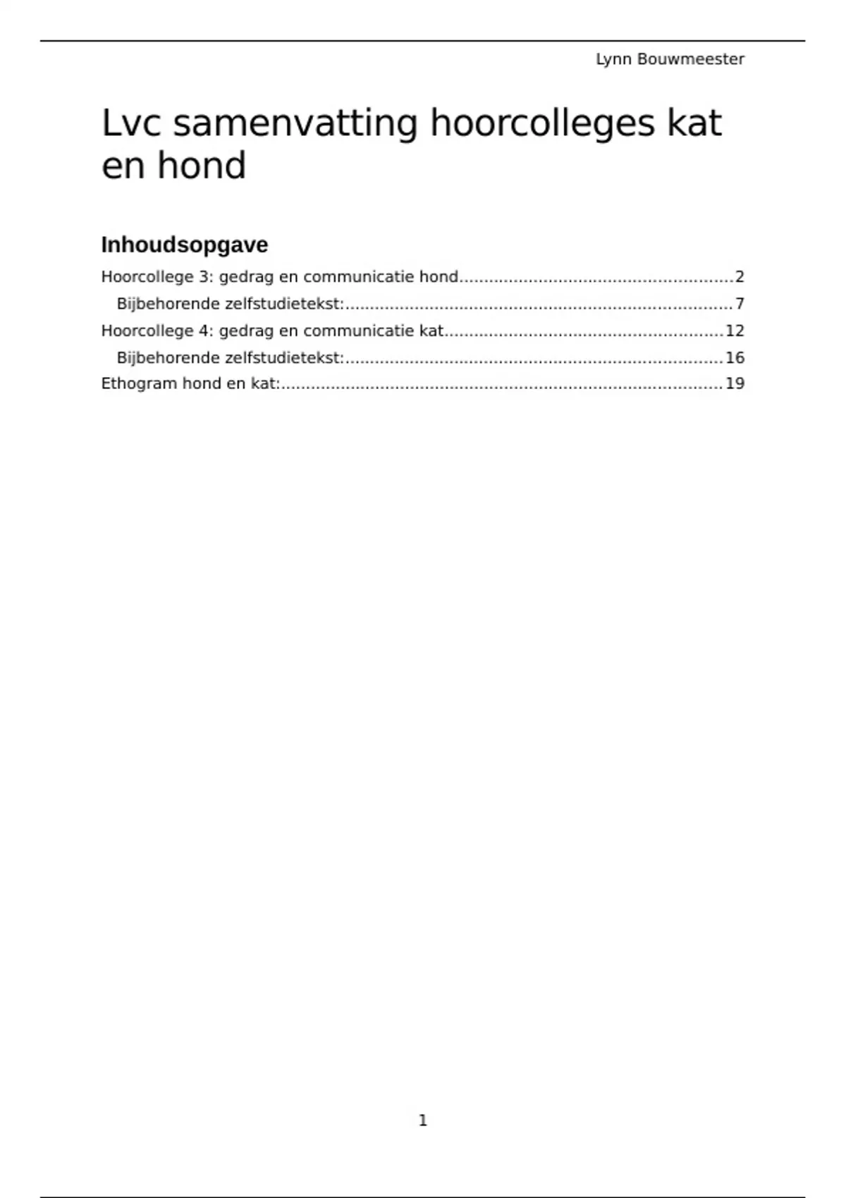 Hoorcollege 4: gedrag en communicatie kat........................................................12