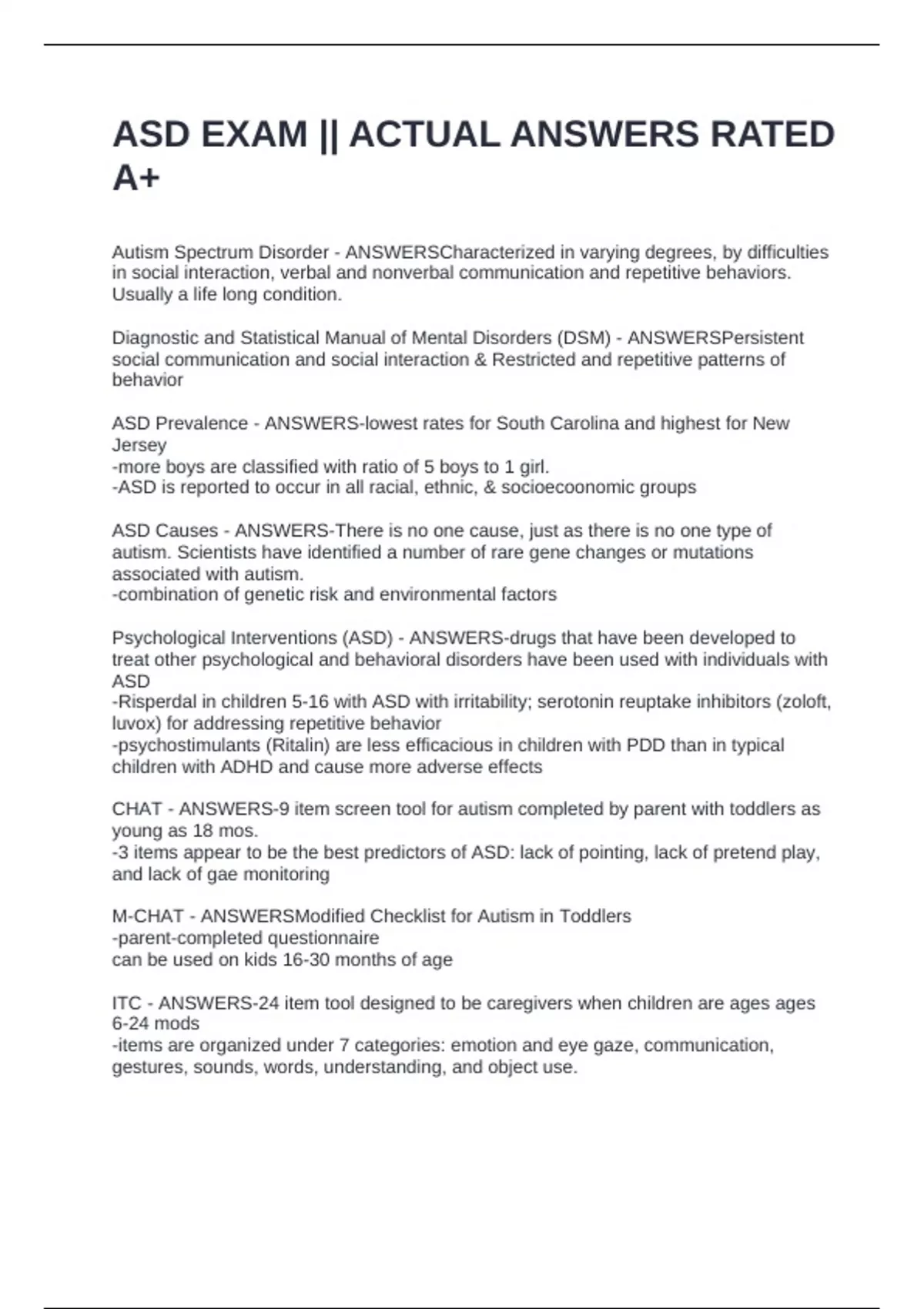 Childhood Autism Rating Scale (CARS) - ANSWERSIdentifies children over 2 years old