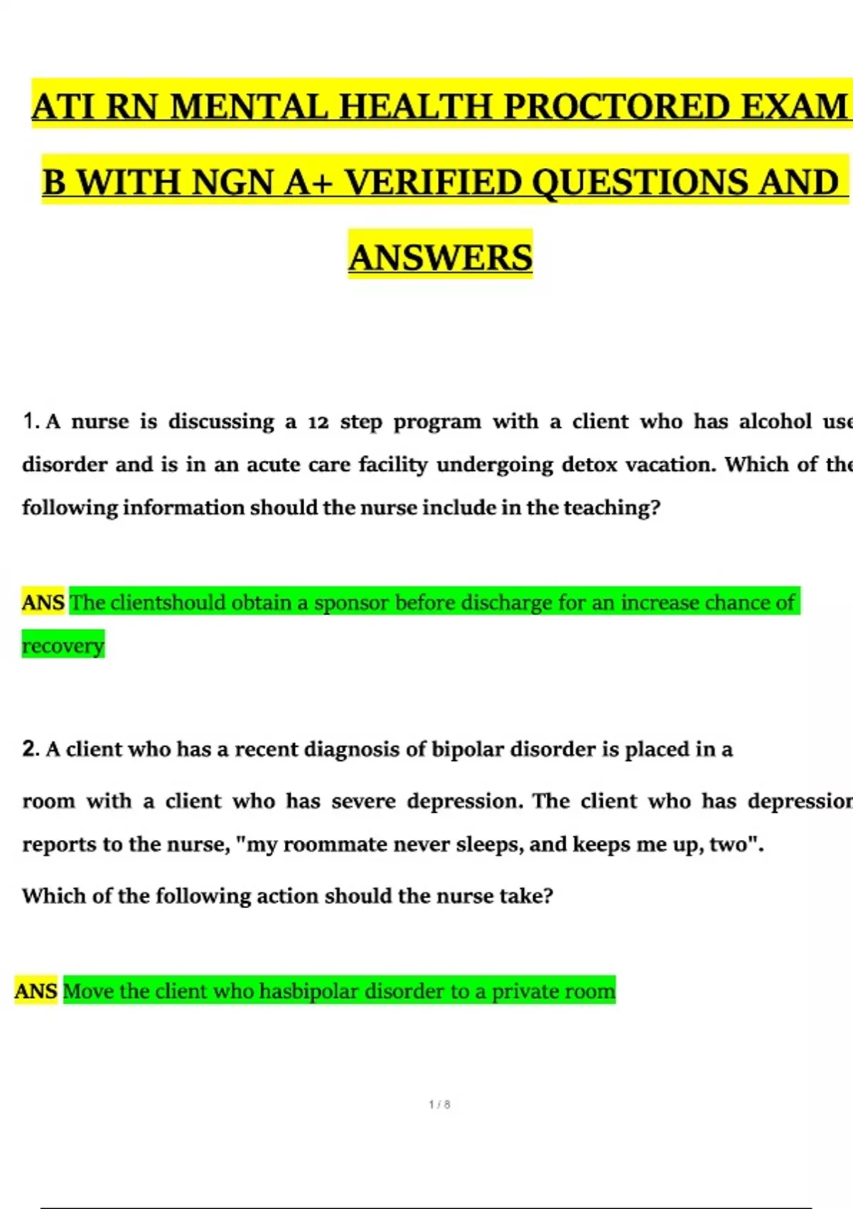 ATI RN MENTAL HEALTH PROCTORED EXAM B WITH A+ VERIFIED QUESTIONS AND ANSWERS ( V2 )