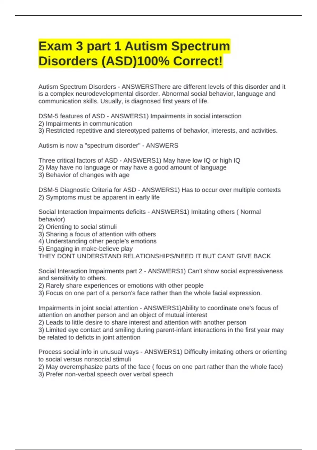 DSM-5 features of ASD - ANSWERS1) Impairments in social interaction