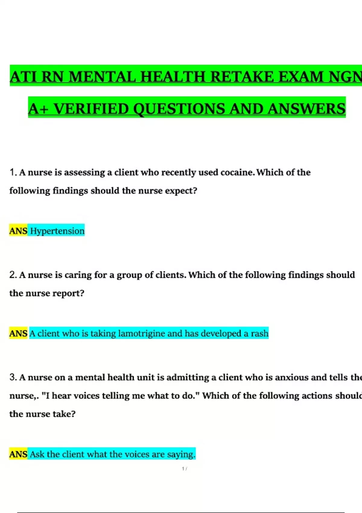 ATI RN MENTAL HEALTH RETAKE EXAM A+ VERIFIED QUESTIONS AND ANSWERS ( V4 )