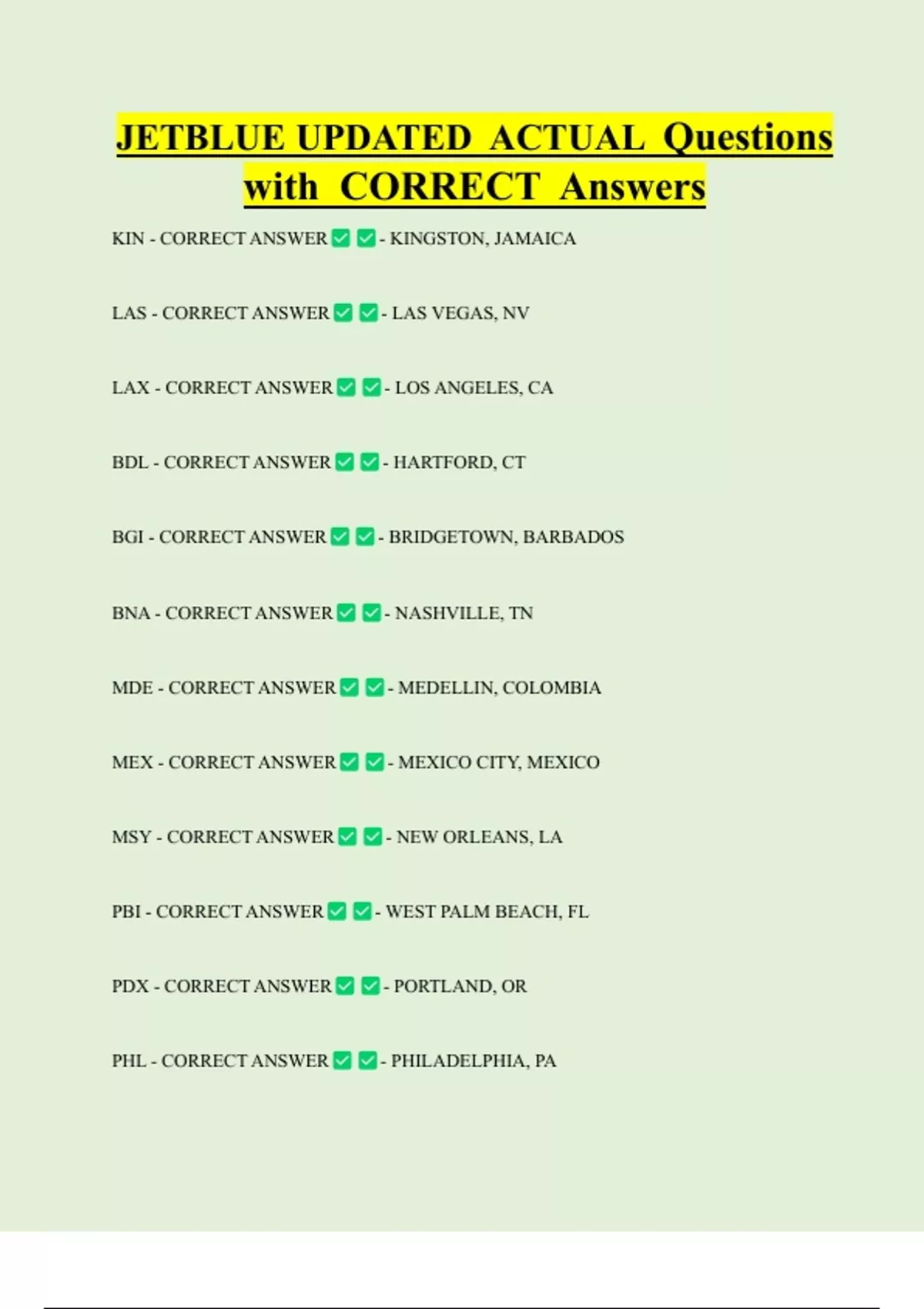 PBI - CORRECT ANSWER - WEST PALM BEACH, FL