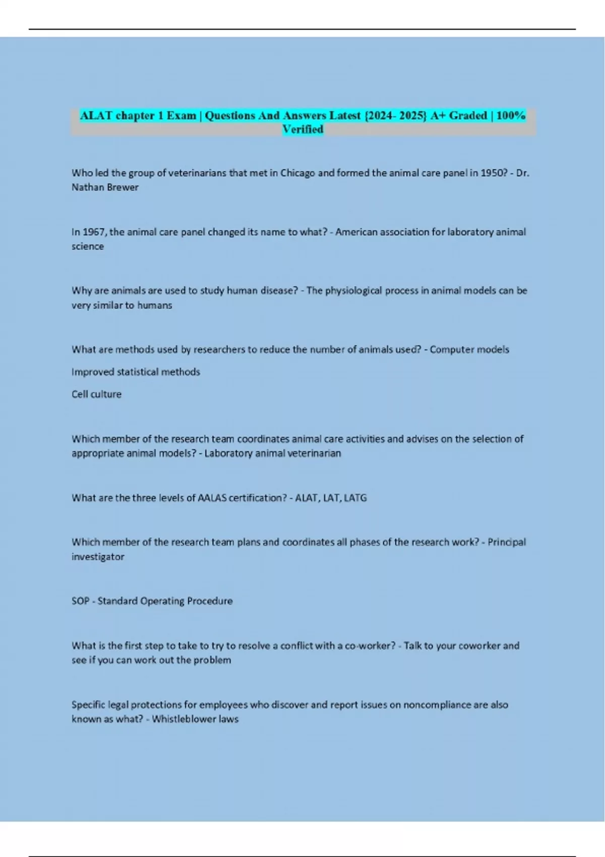 ALAT chapter 1 Exam | Questions And Answers