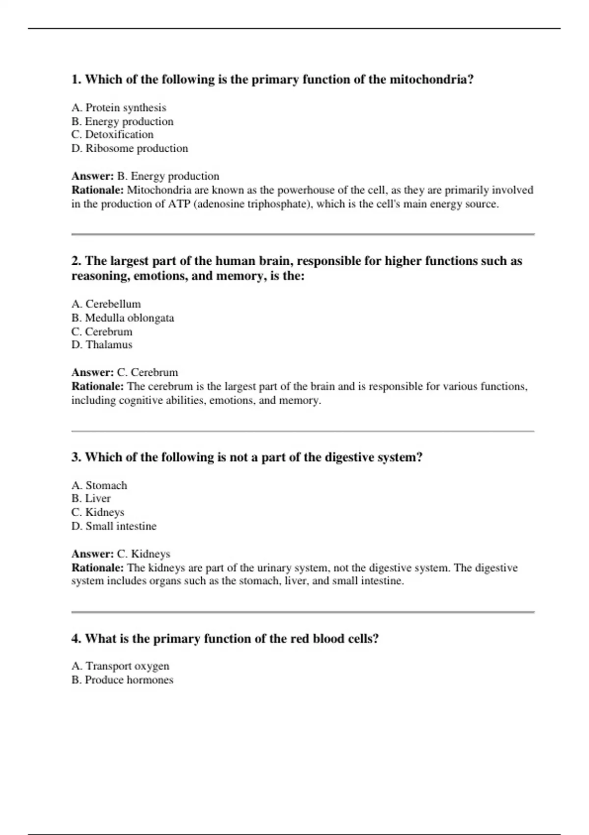 Rationale: The cerebrum is the largest part of the brain and is responsible for various functions,