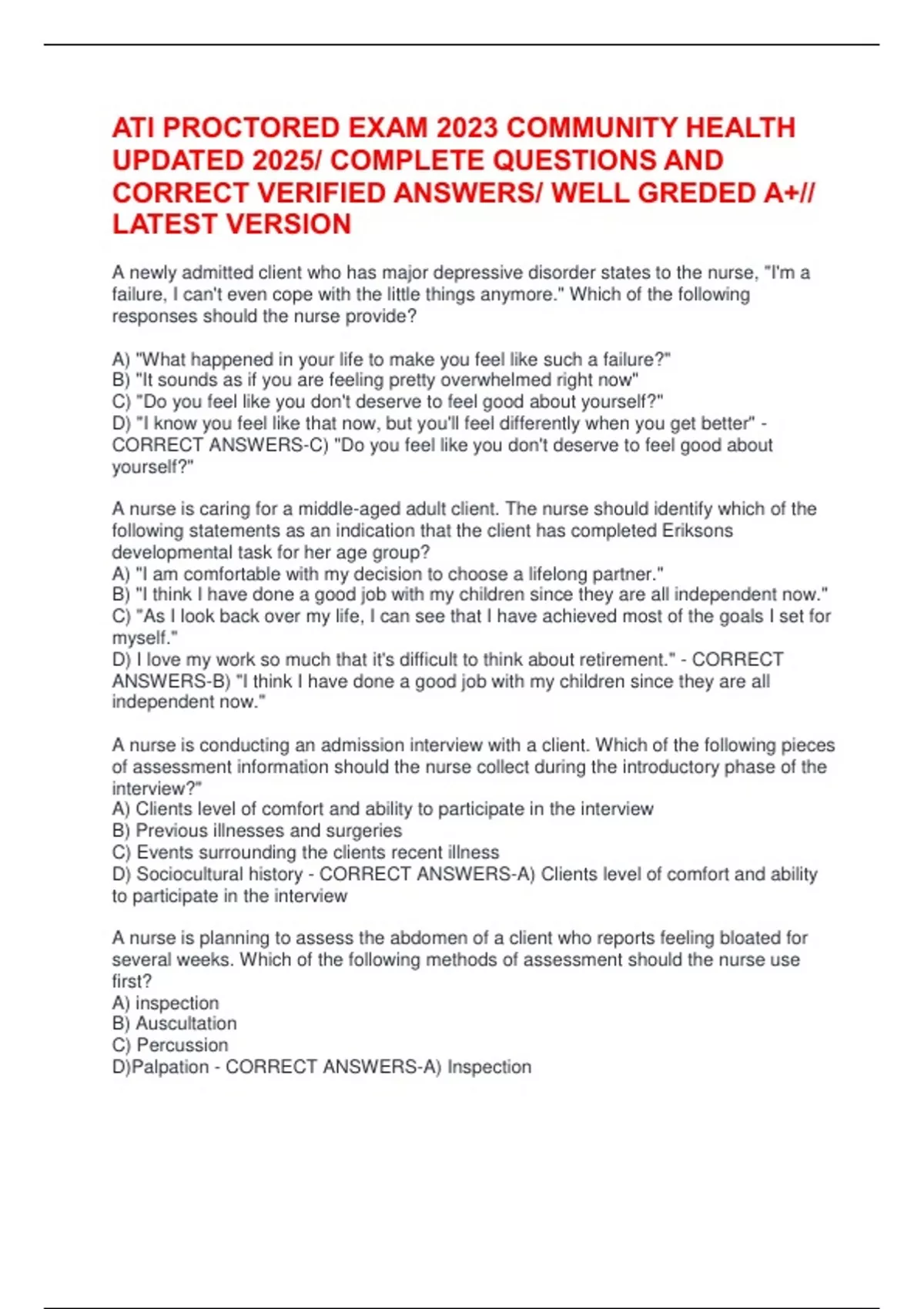 D)Palpation - CORRECT ANSWERS-A) Inspection