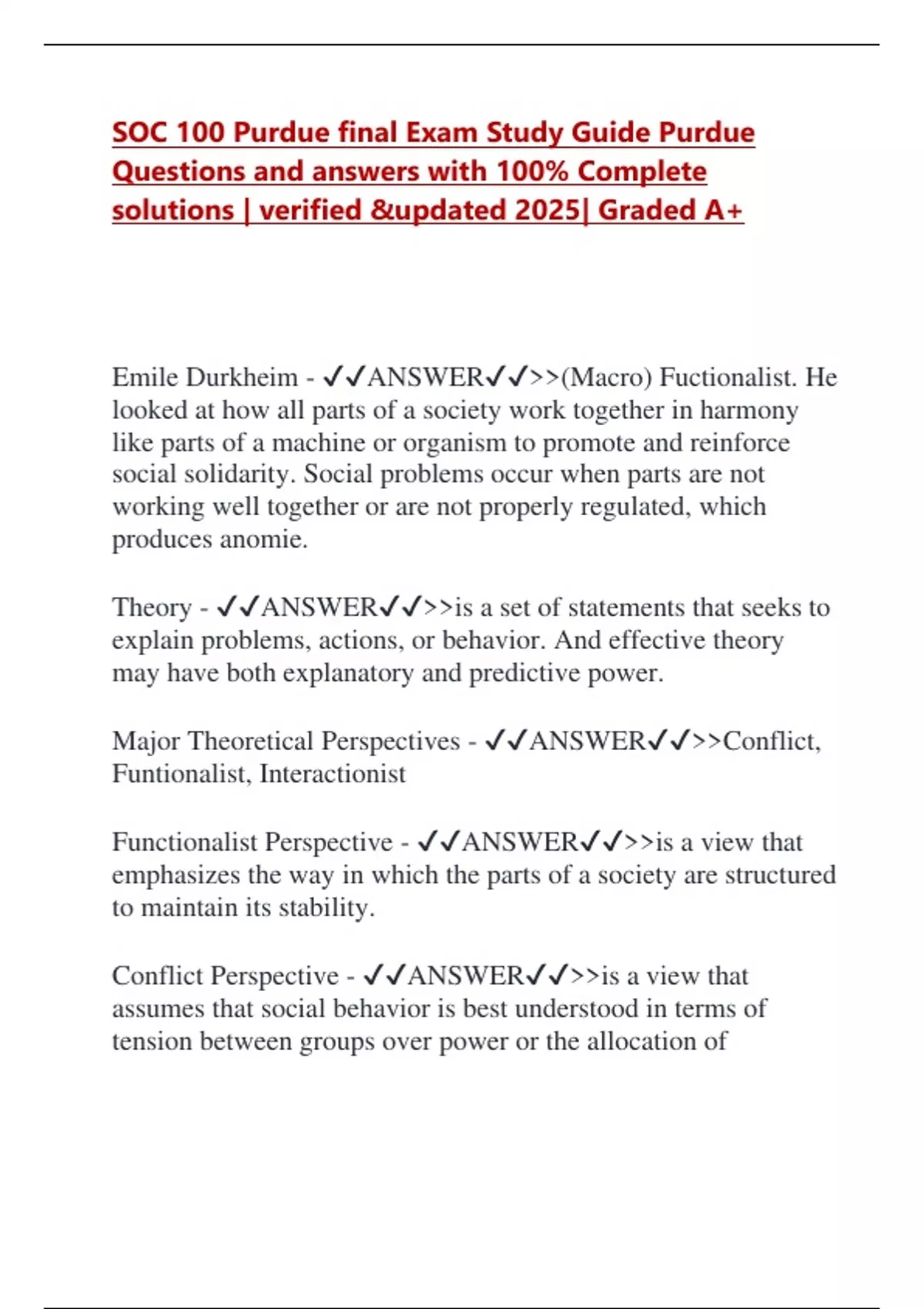 Conflict Perspective - ✔✔ANSWER✔✔>>is a view that