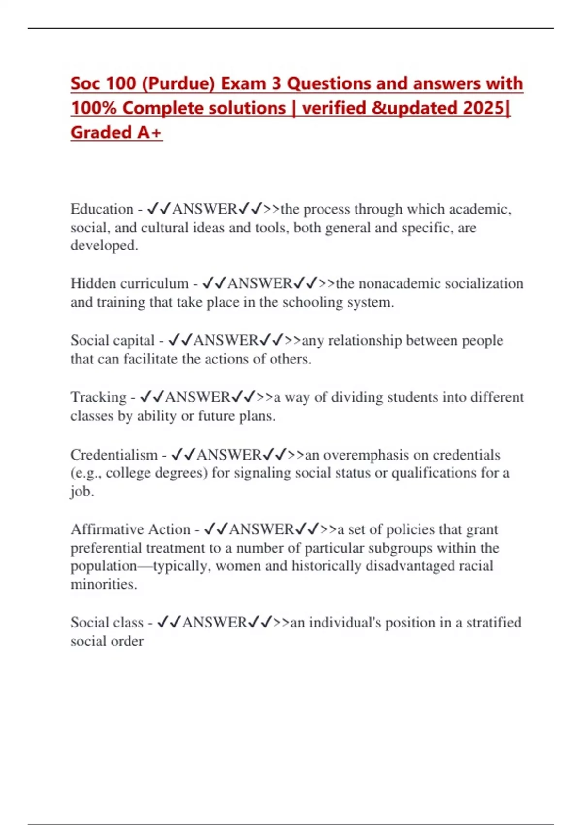 Soc 100 (Purdue) Exam 3 Questions and answers with