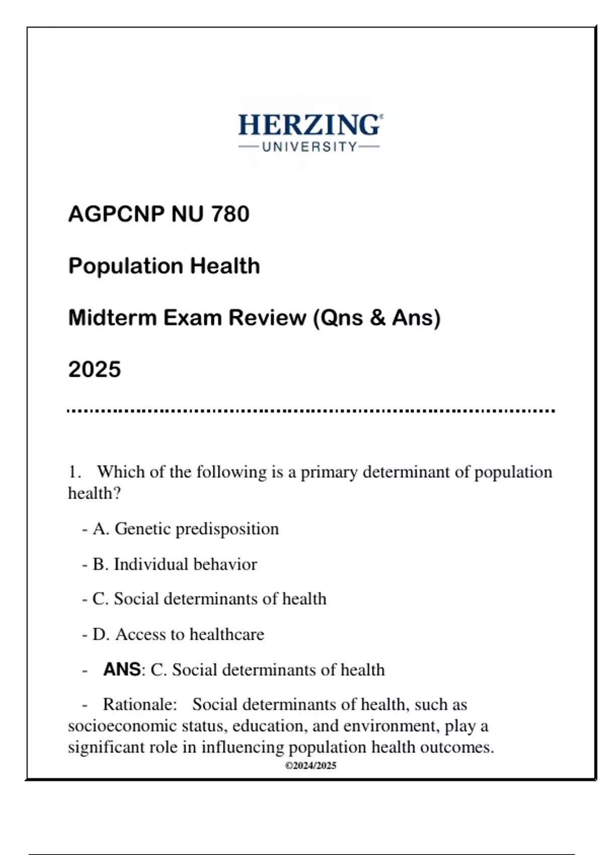 NU 780 (HU-AGPCNP) Population Health Midterm Exam (Qns & Ans) 2025NU 780 (HU-AGPCNP) Population Health Midterm Exam (Qns & Ans) 2025NU 780 (HU-AGPCNP) Population Health Midterm Exam (Qns & Ans) 2025