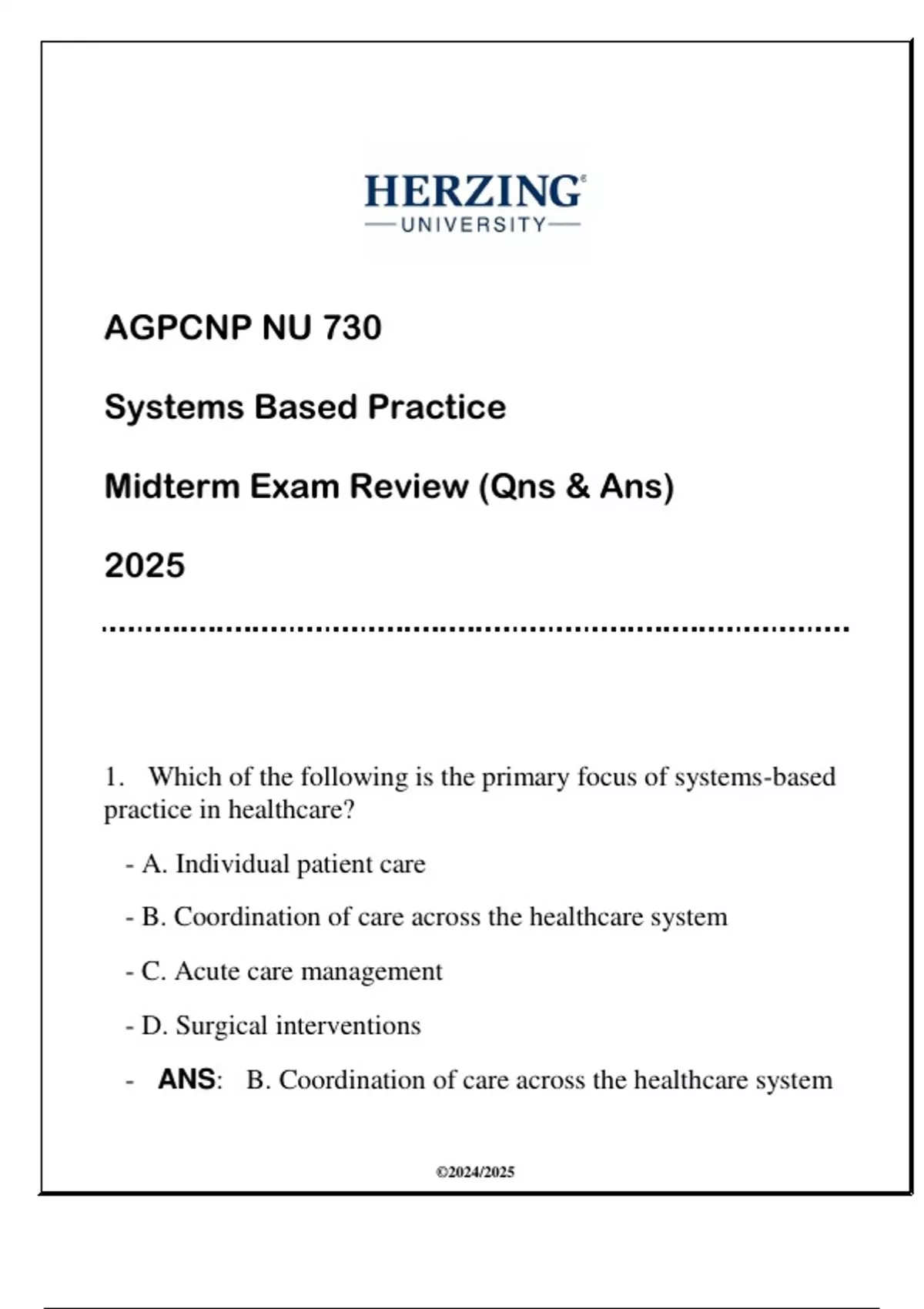 - ANS: B. Coordination of care across the healthcare system