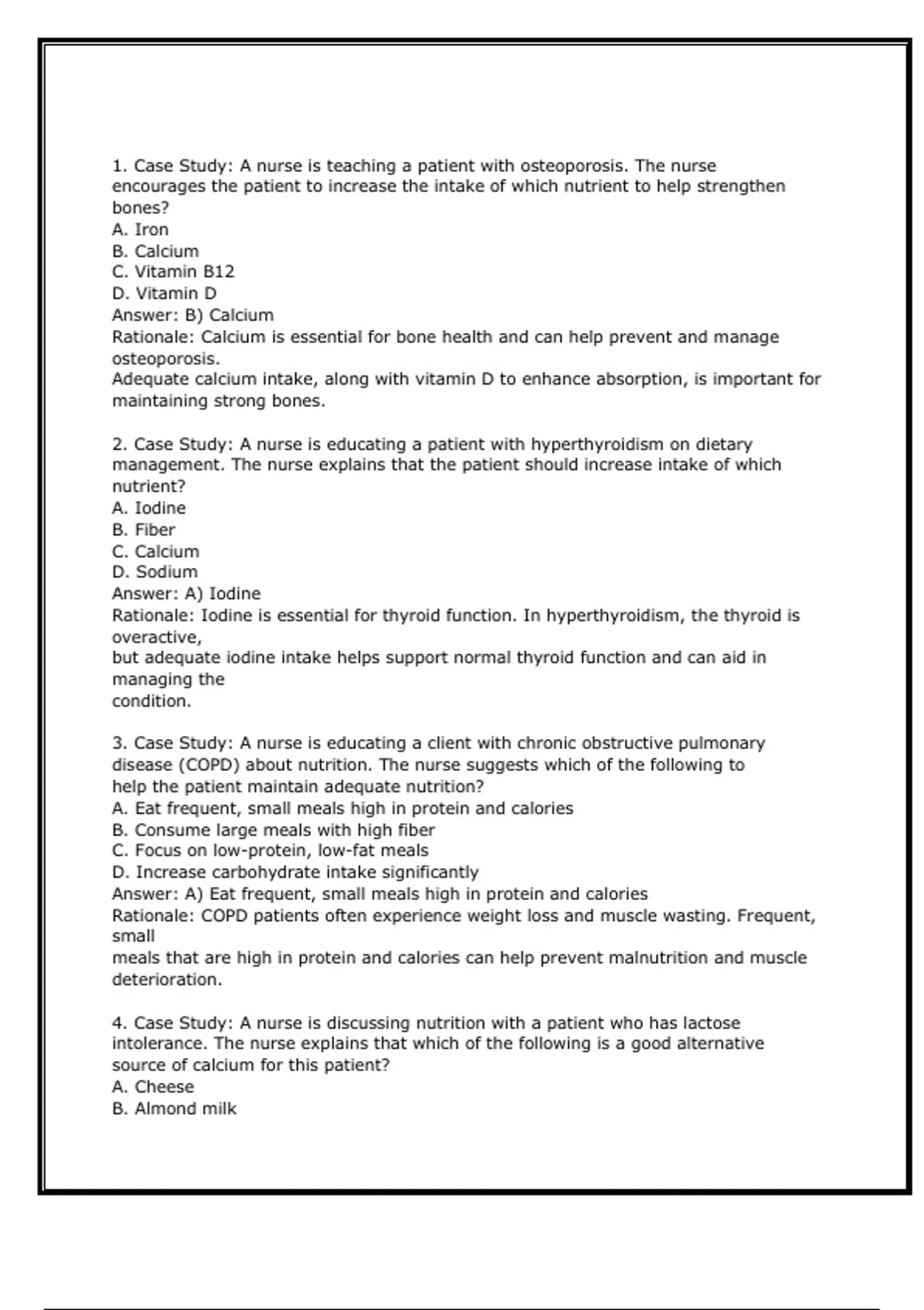4. Case Study: A nurse is discussing nutrition with a patient who has lactose