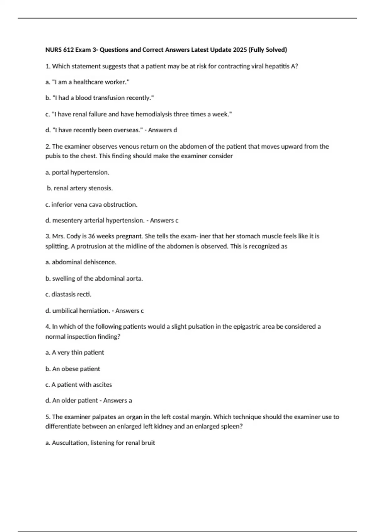d. mesentery arterial hypertension. - Answers c