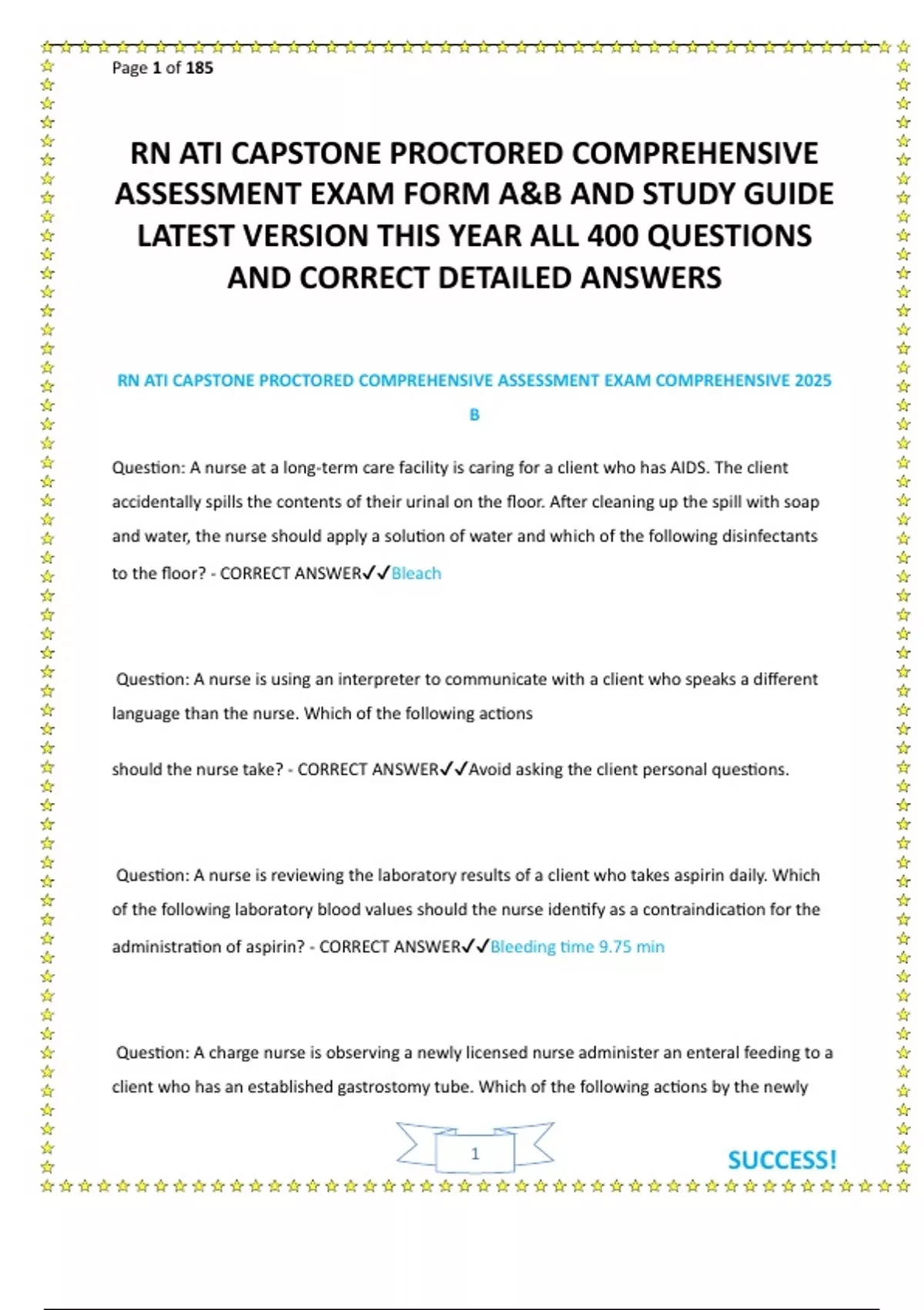 RN ATI CAPSTONE PROCTORED COMPREHENSIVE ASSESSMENT EXAM COMPREHENSIVE 2025