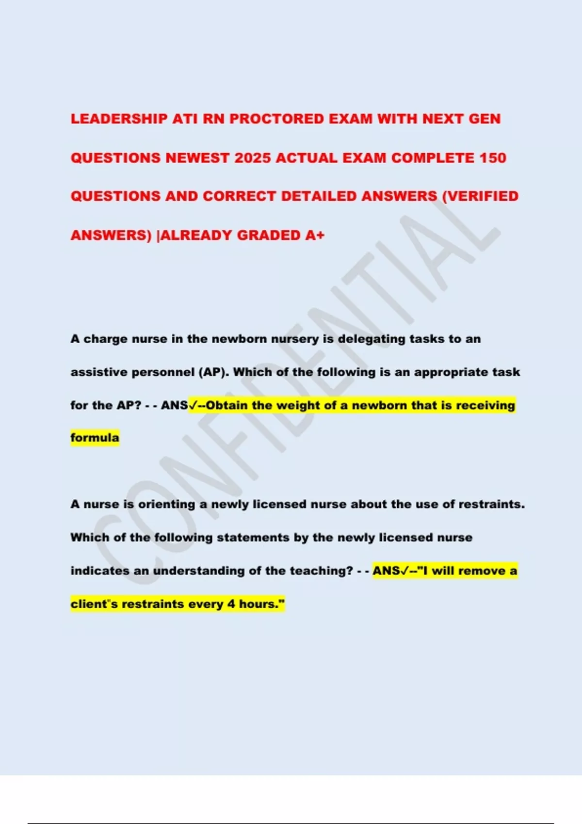 LEADERSHIP ATI RN PROCTORED EXAM WITH NEXT GEN