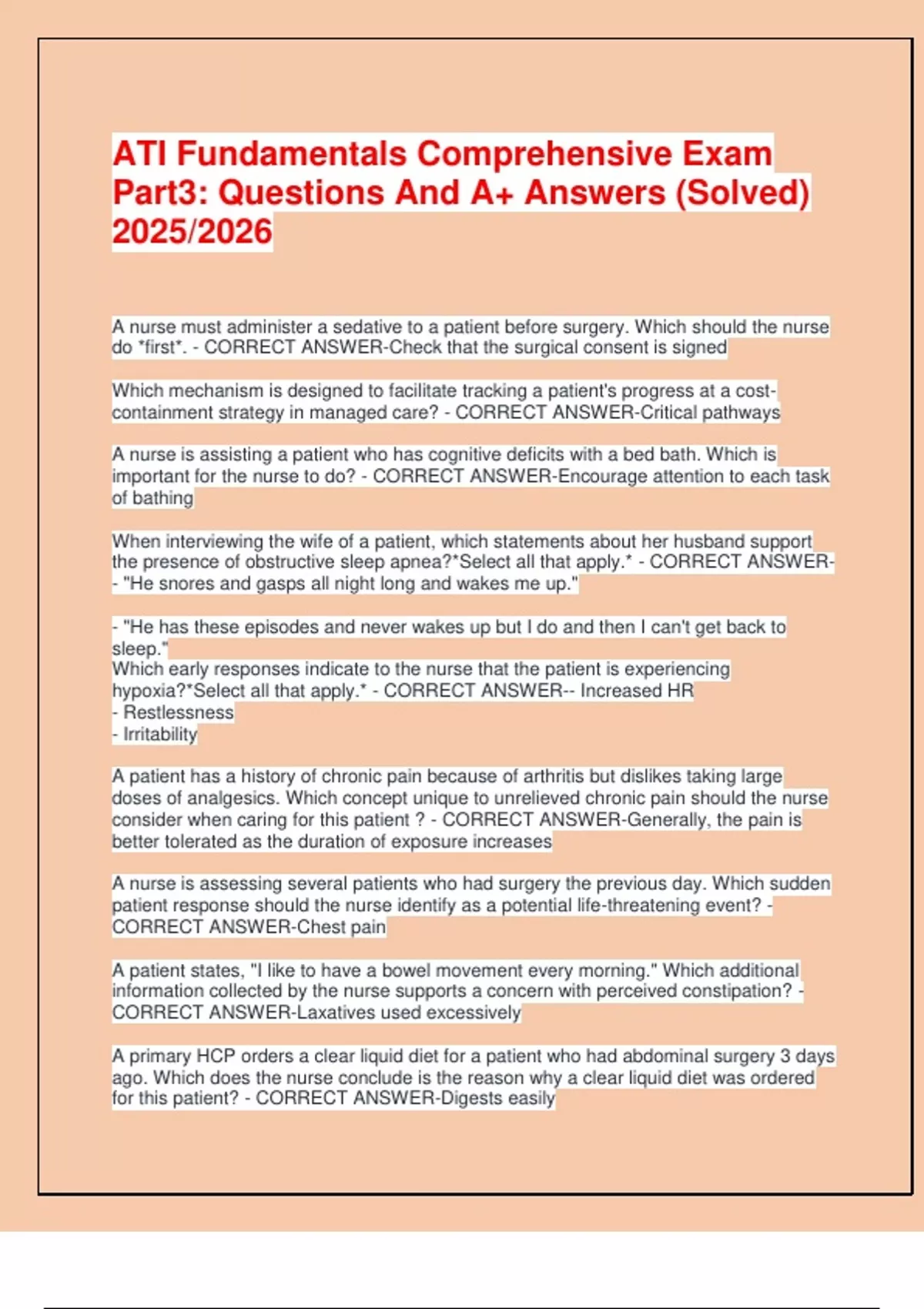 ATI Fundamentals Comprehensive Exam Part3: Questions And A+ Answers (Solved) 2025/2026