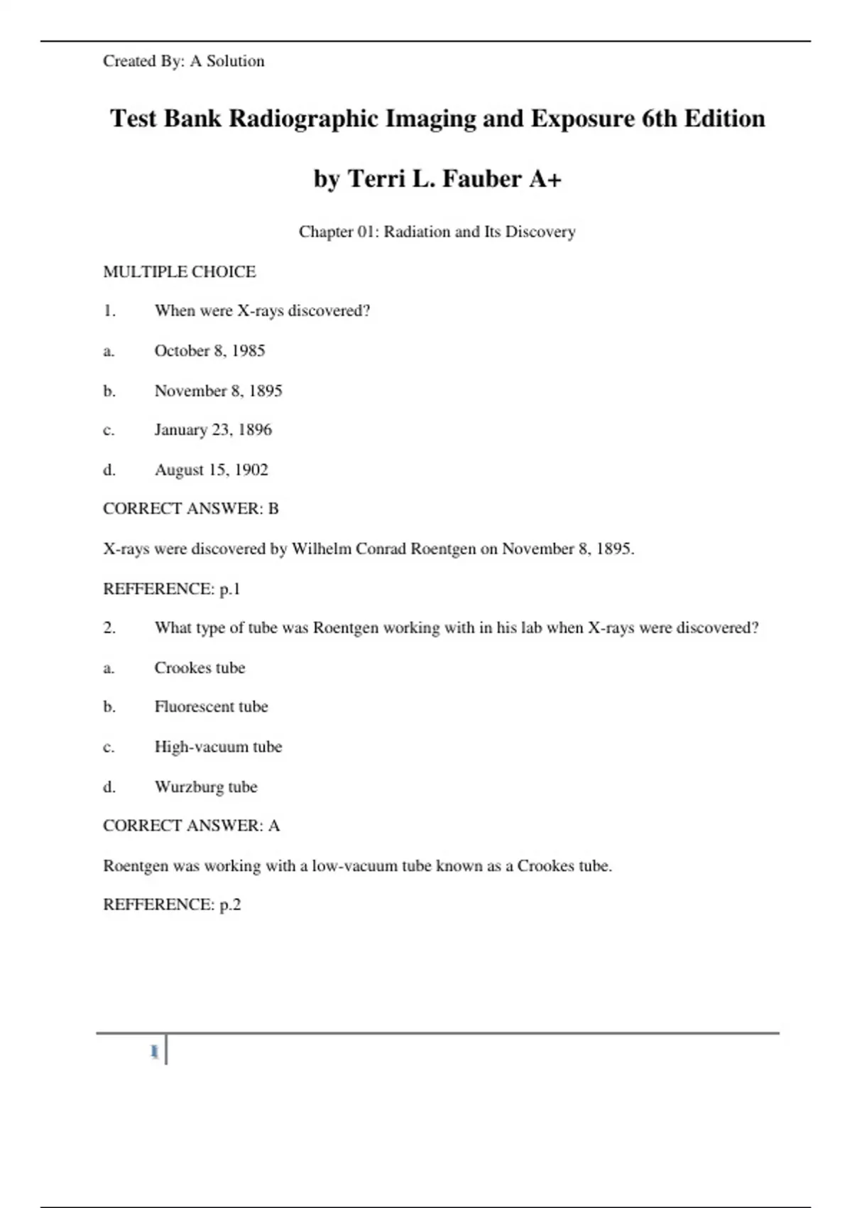Test Bank Radiographic Imaging and Exposure 6th Edition
