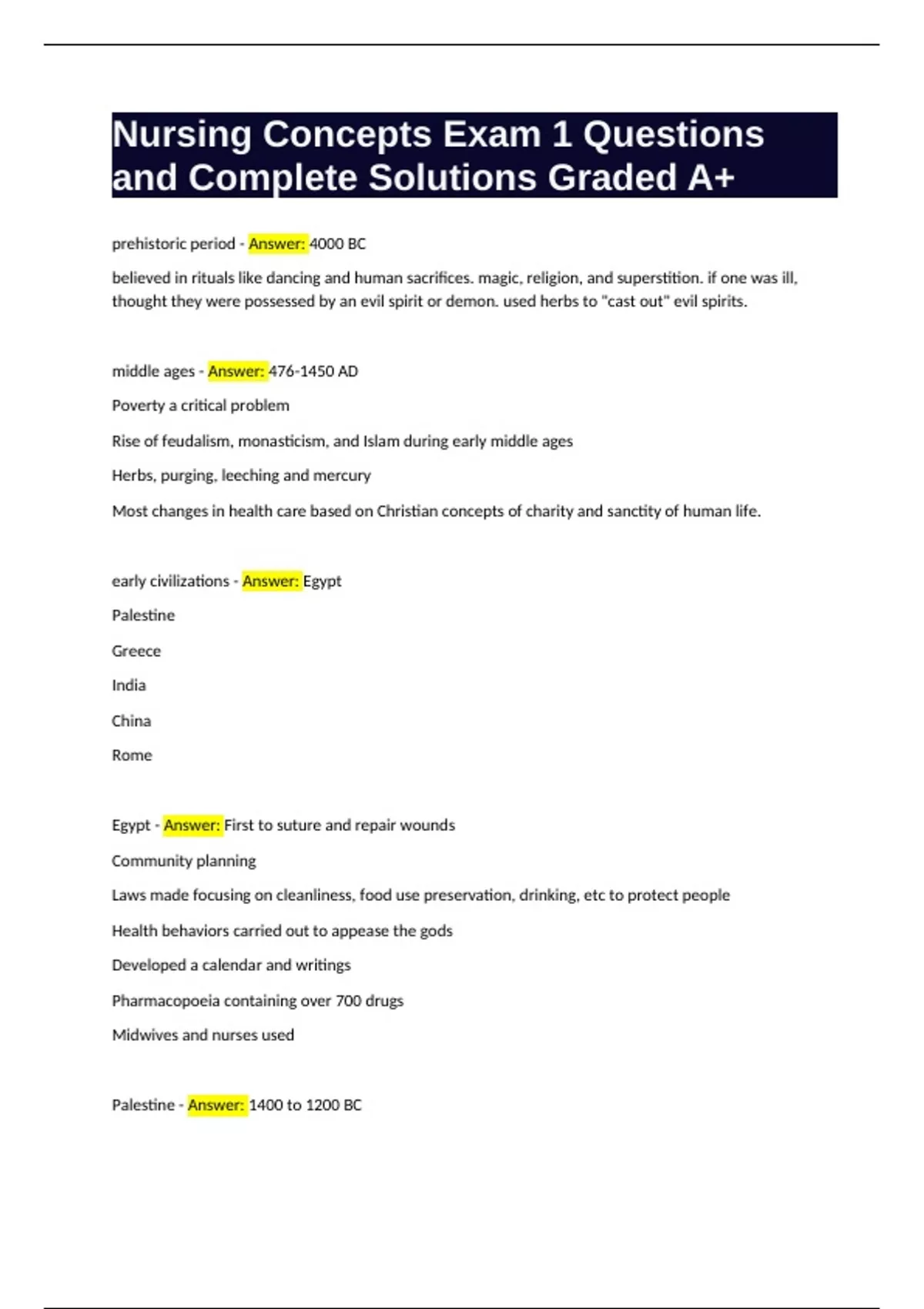 early civilizations - Answer: Egypt