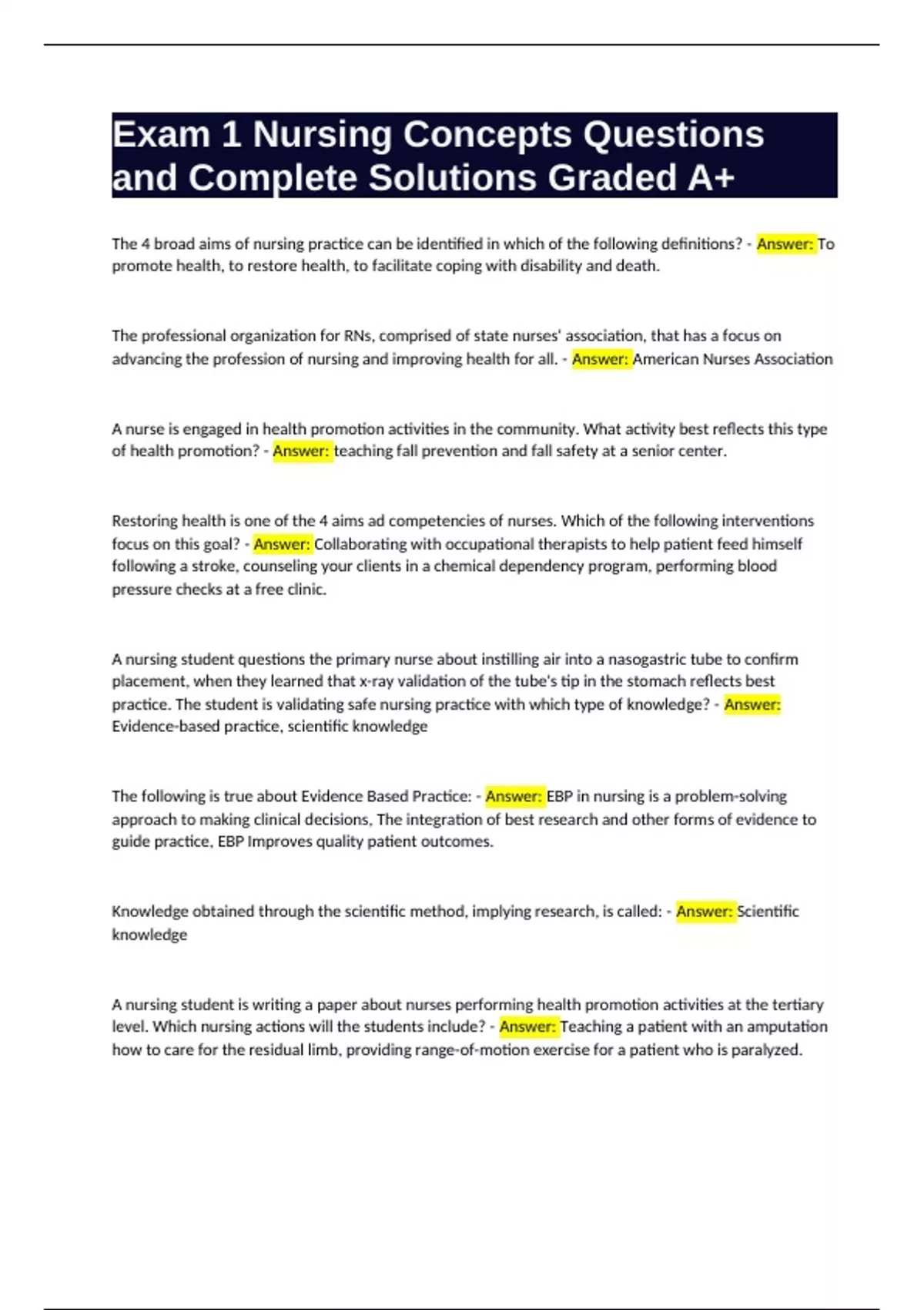 and Complete Solutions Graded A+