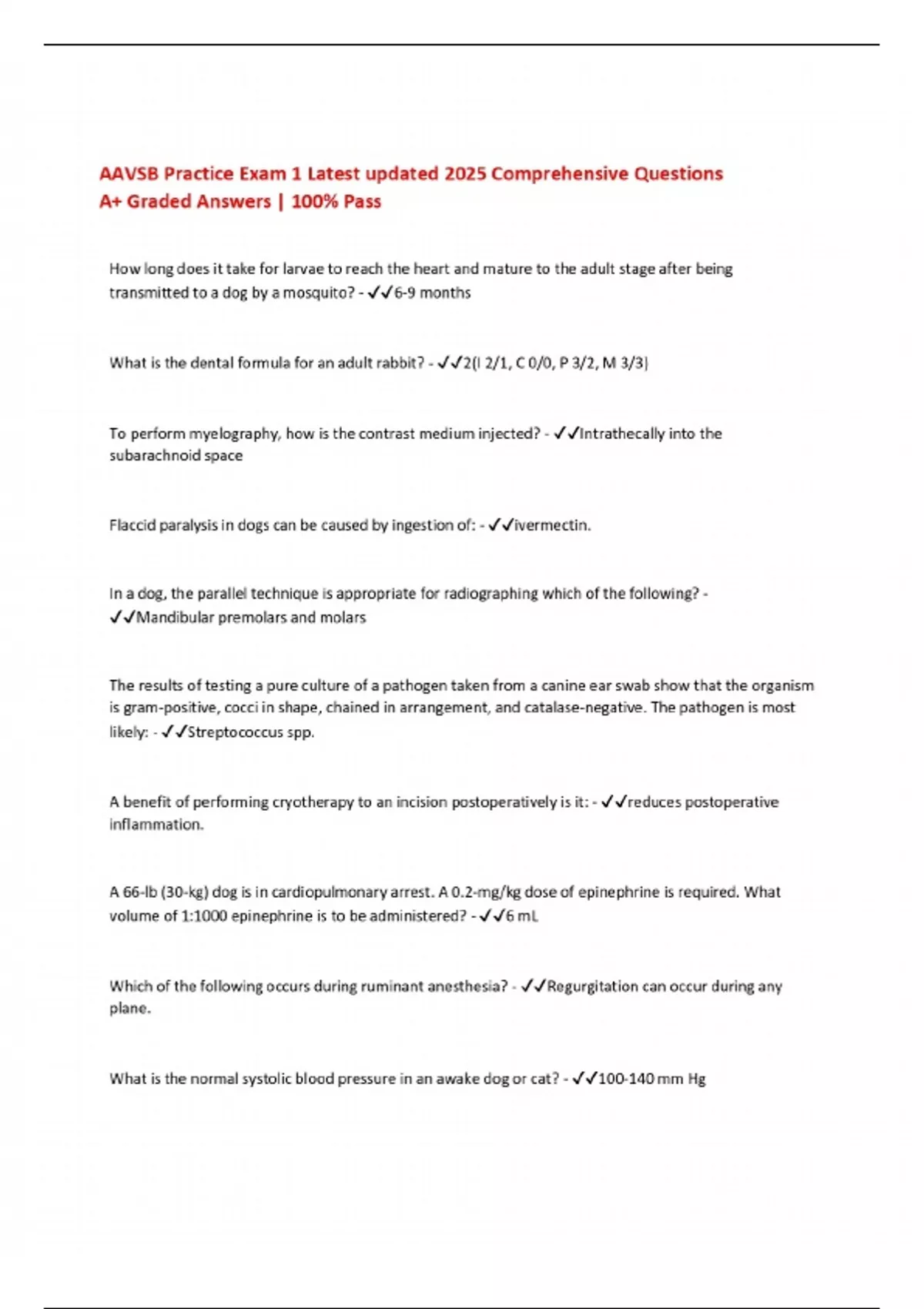 AAVSB Practice Exam 1 Latest updated 2025 Comprehensive Questions A+ Graded Answers | 100% Pass