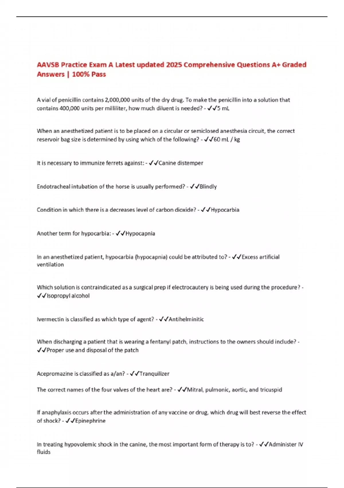 AAVSB Practice Exam A Latest updated 2025 Comprehensive Questions A+ Graded Answers | 100% Pass
