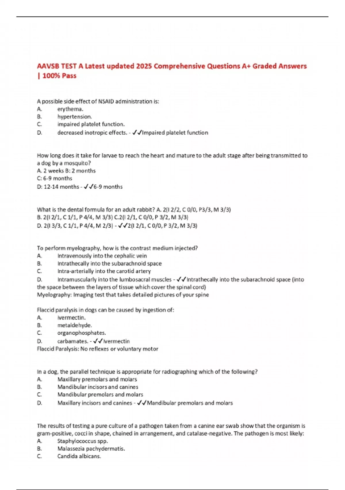 AAVSB TEST A Latest updated 2025 Comprehensive Questions A+ Graded Answers | 100% Pass