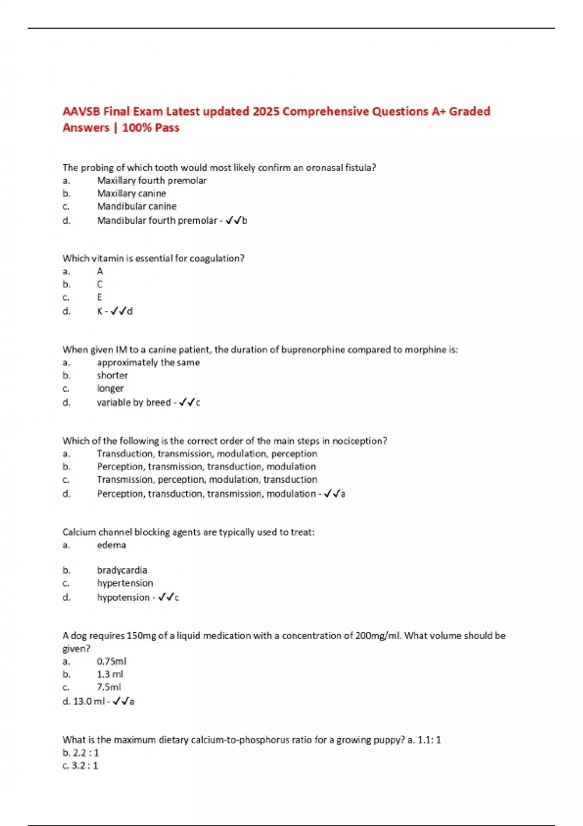 AAVSB Final Exam Latest updated 2025 Comprehensive Questions A+ Graded Answers | 100% Pass