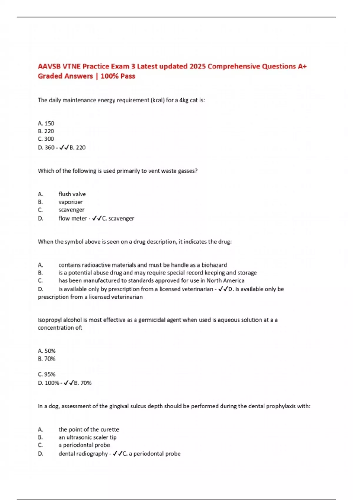 AAVSB VTNE Practice Exam 3 Latest updated 2025 Comprehensive Questions A+ Graded Answers | 100% Pass