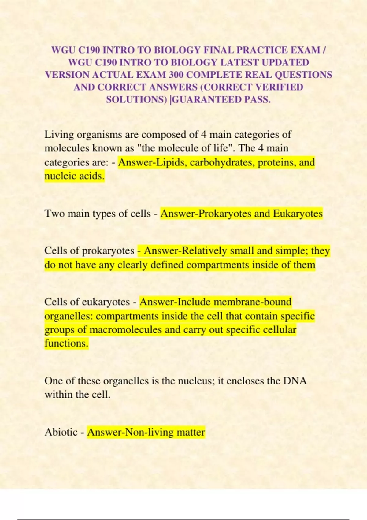 WGU C190 INTRO TO BIOLOGY LATEST UPDATED
