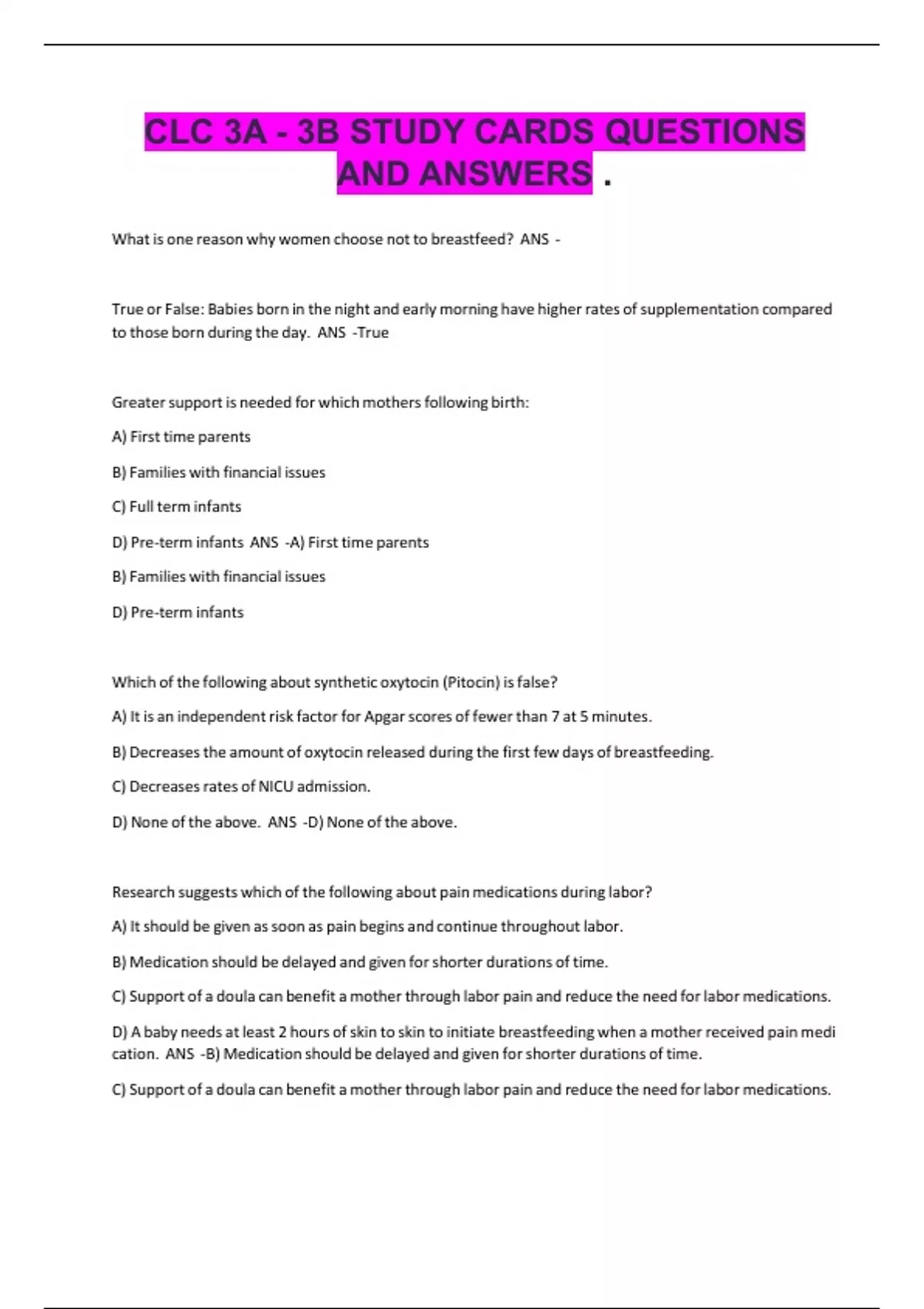 CLC 3A - 3B STUDY CARDS QUESTIONS AND ANSWERS .